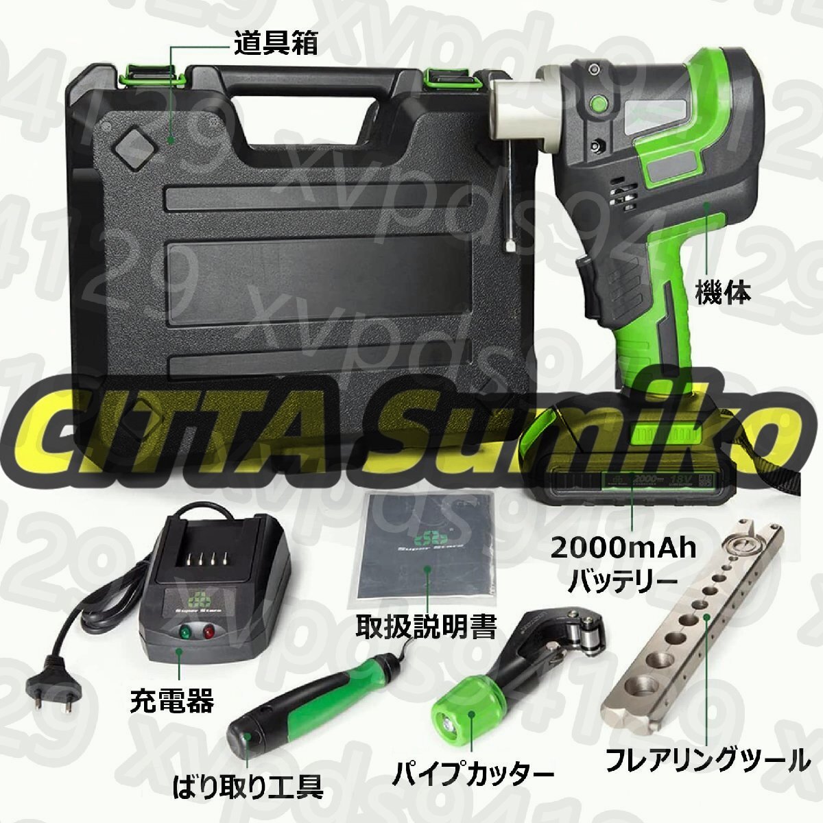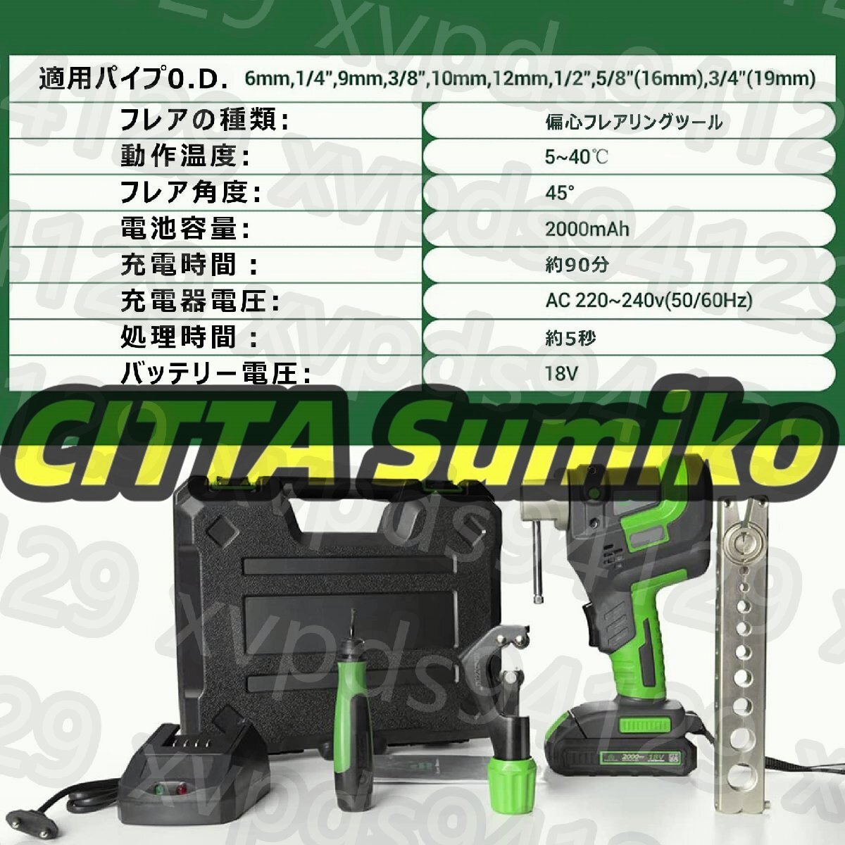 【メトリックとインチ 2 in 1】- この電動フレアリングツールの 9 つのパイプサイズ: Φ6mm、9mm、10mm、12mm、1/4 インチ、3/8 インチ、1/2 インチ、5/8 インチ (16mm)、3 /4インチ(19mm) 大容量リチウム電池:2000mAh!
