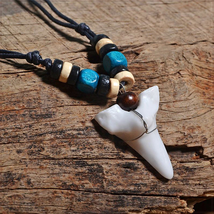 [PENDANT NECKLACE] HAWAII SURFER ハワイ サーファー ハンドメイド お守り シャーク サメ の歯 木製 天然素材 ネックレス 【送料無料】