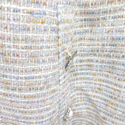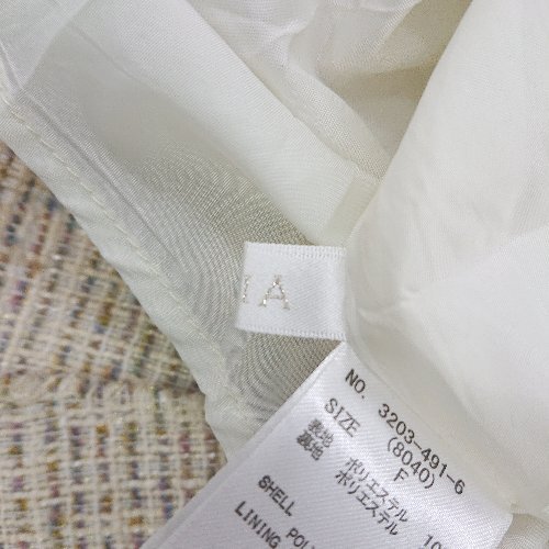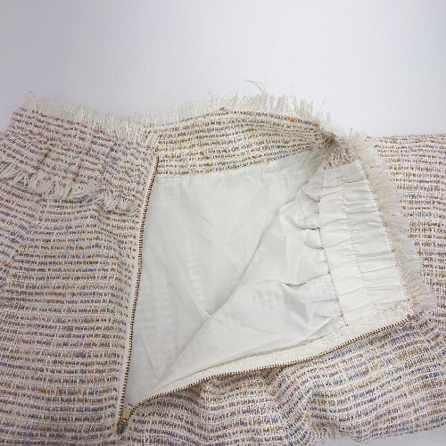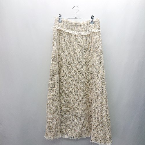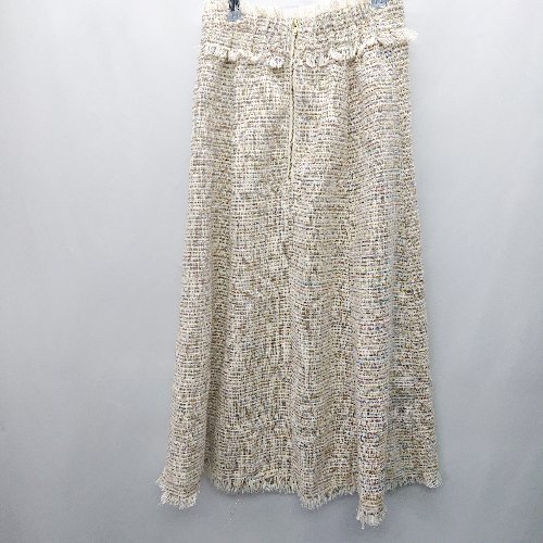 ◇ MiiA ツイード柄 ビジューボタン ロング丈 フレア スカート サイズF ベージュ マルチカラー レディース E