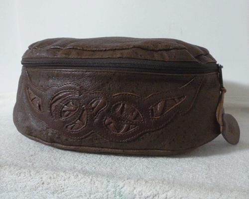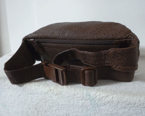 | ☆美品☆ イビザ IBIZA レザー ブラウン 茶 オーストリッチ型押し 葉柄パッチワーク ウエストポーチ ウエストバッグ レディース | ||