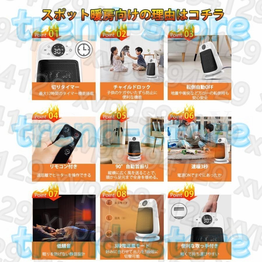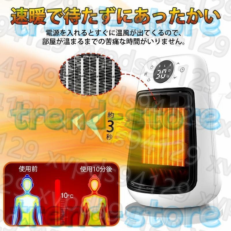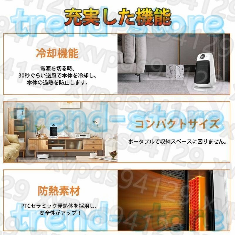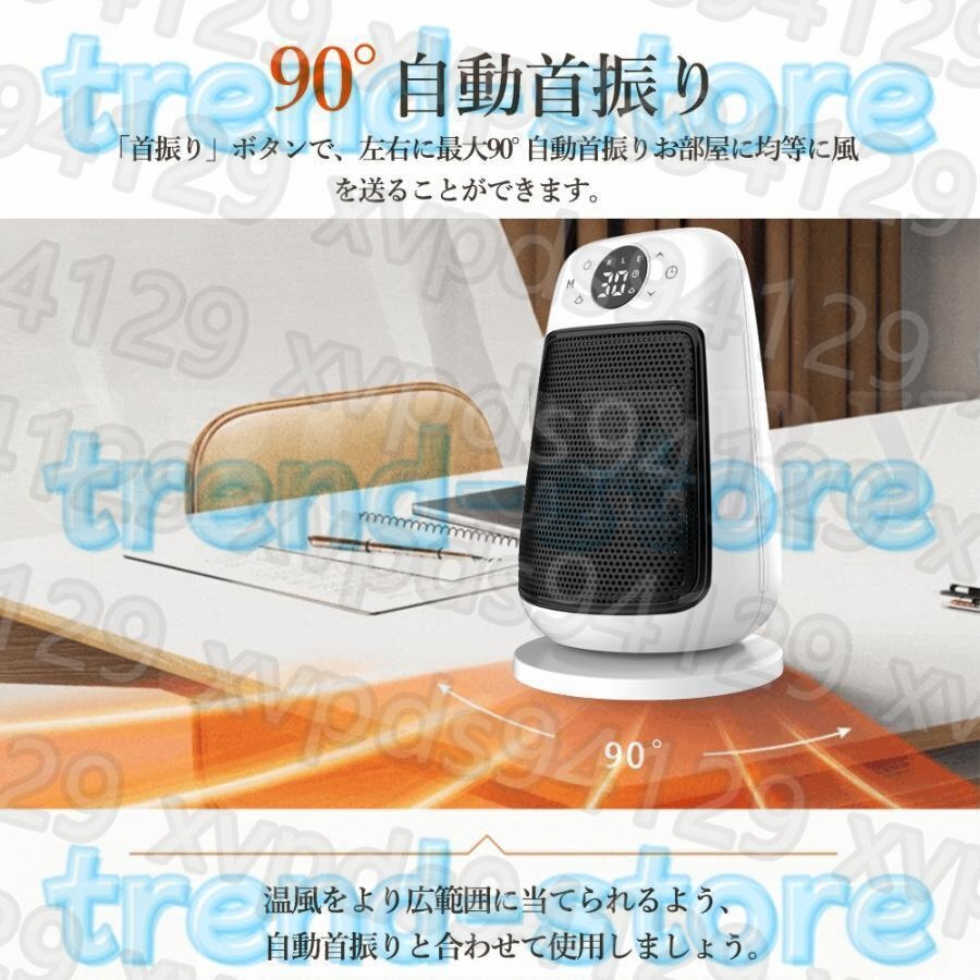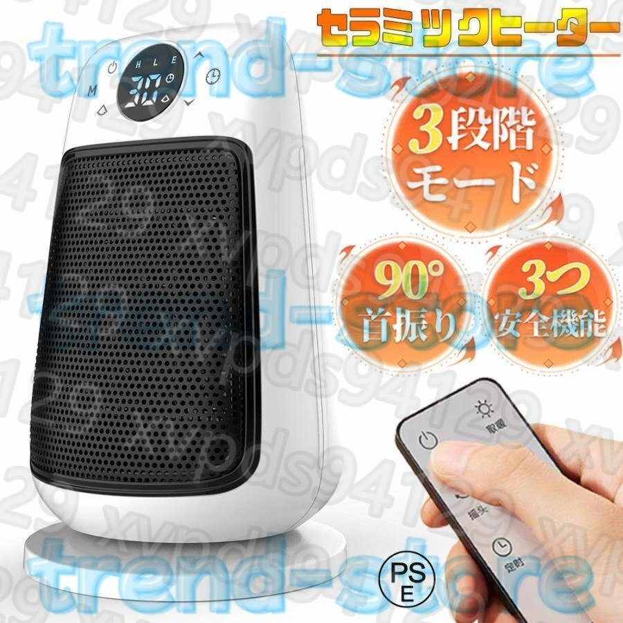 セラミックヒーター 小型 ヒーター 足元 自動首振り 遠隔操作 3段階切替 電気ファンヒーター転倒OFF 即暖 省エネ 1500W 脱衣所 お風呂場