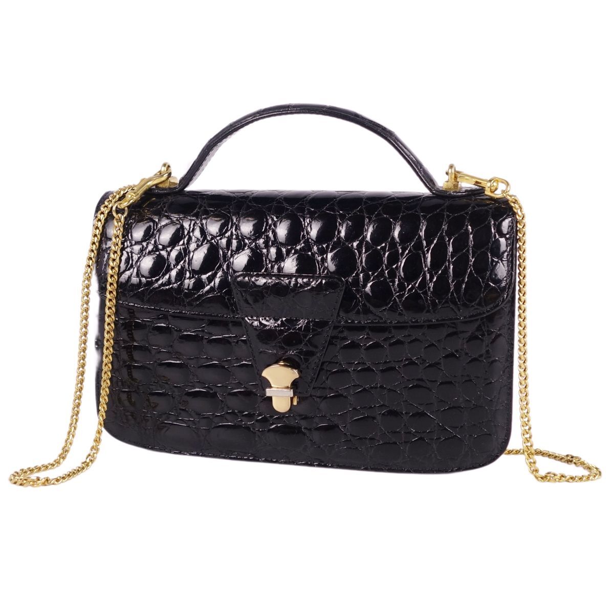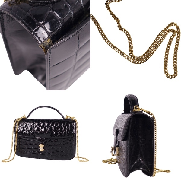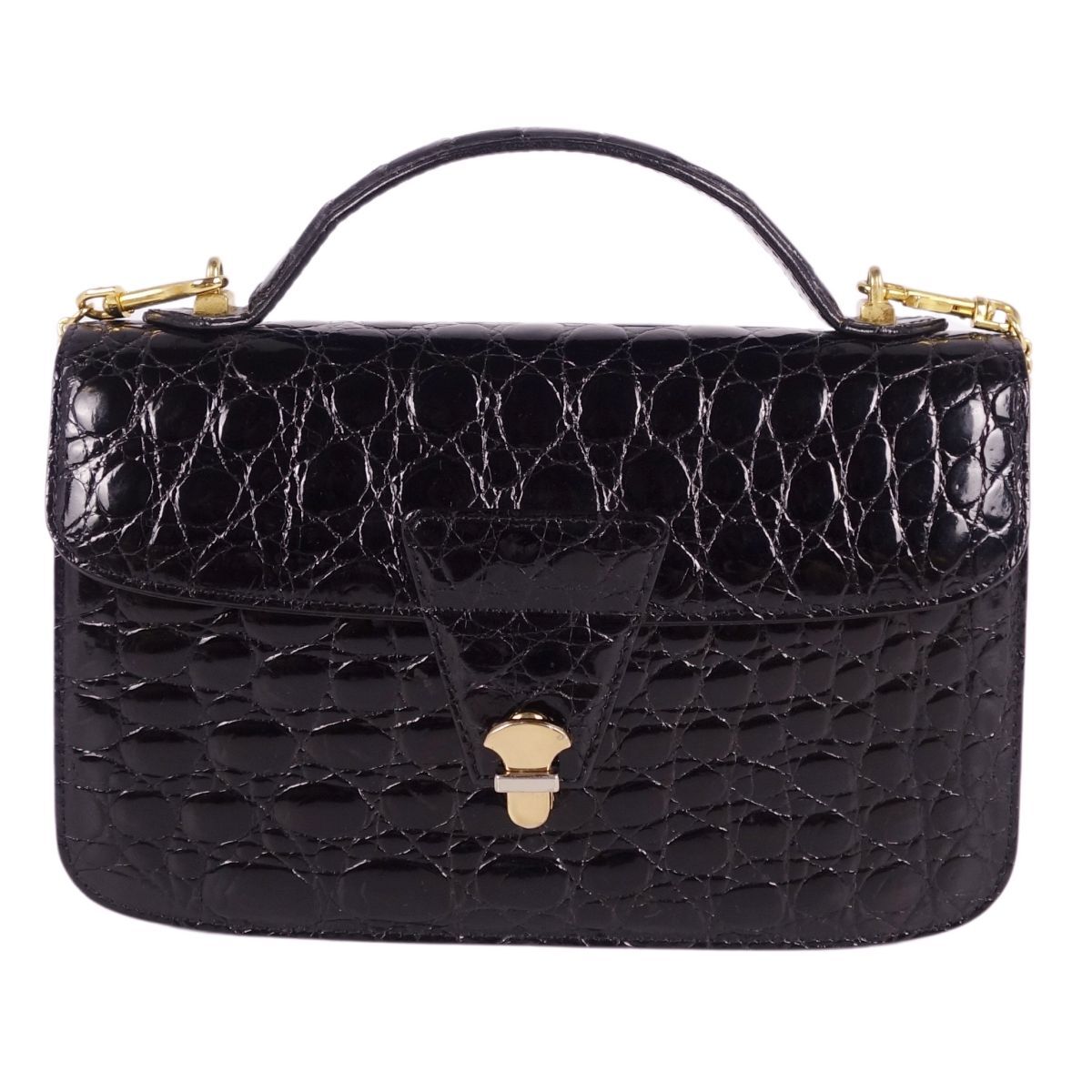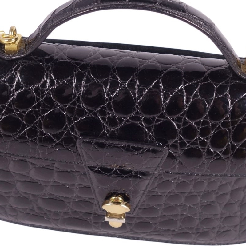 | クロコダイル CROCODILE バッグ ハンドバッグ ミニ ストラップ シャイニークロコ ワニ革 鞄 カバン レディース ブラック |