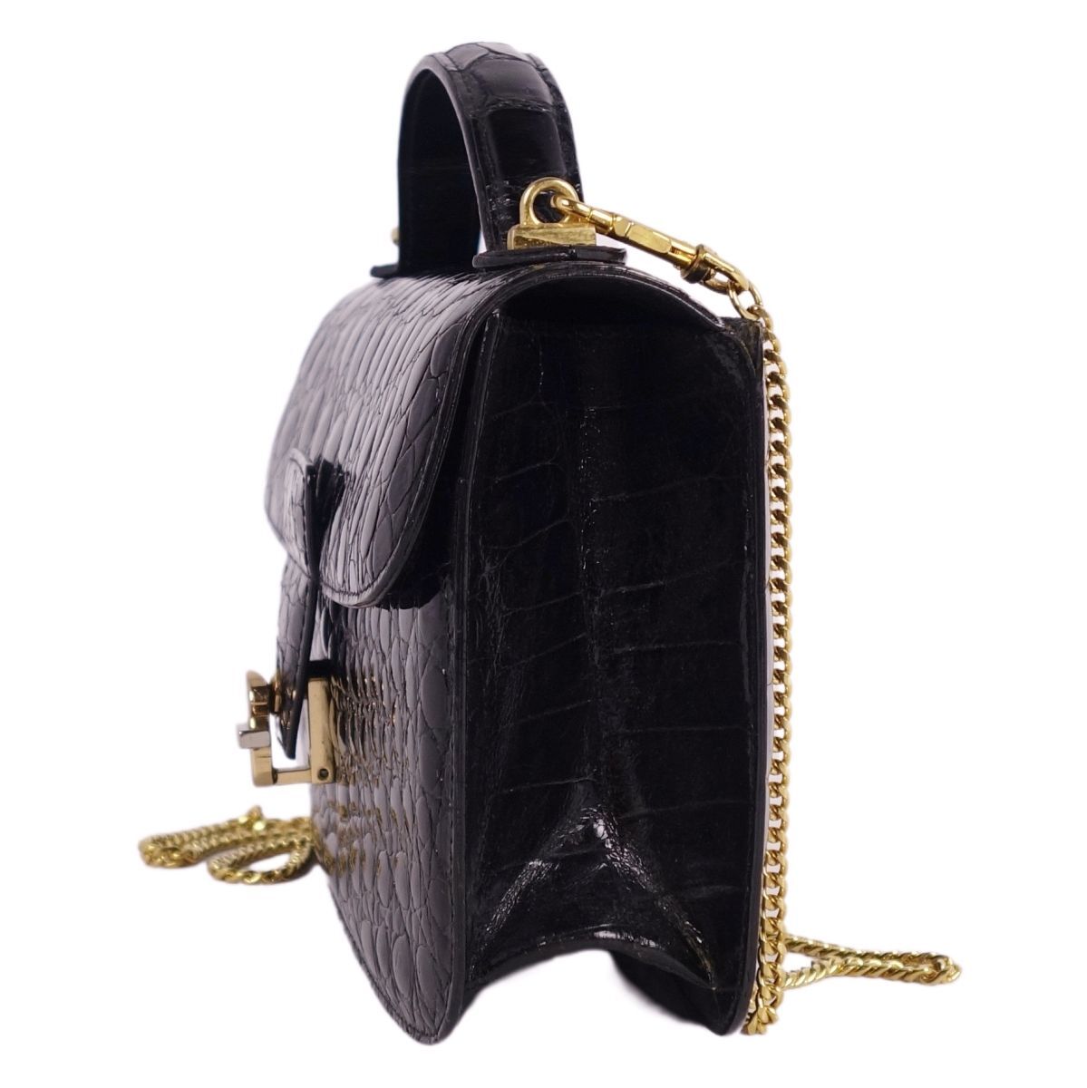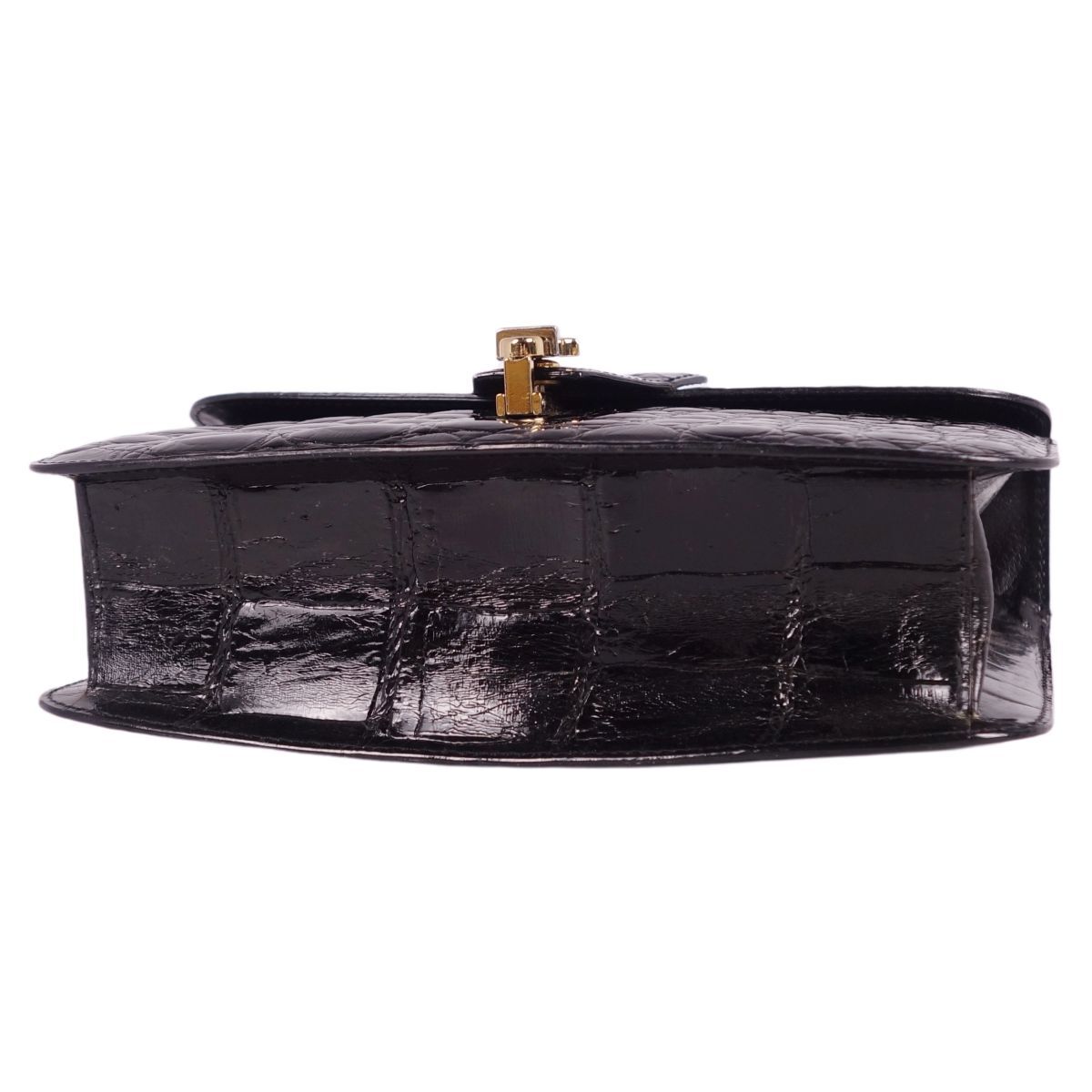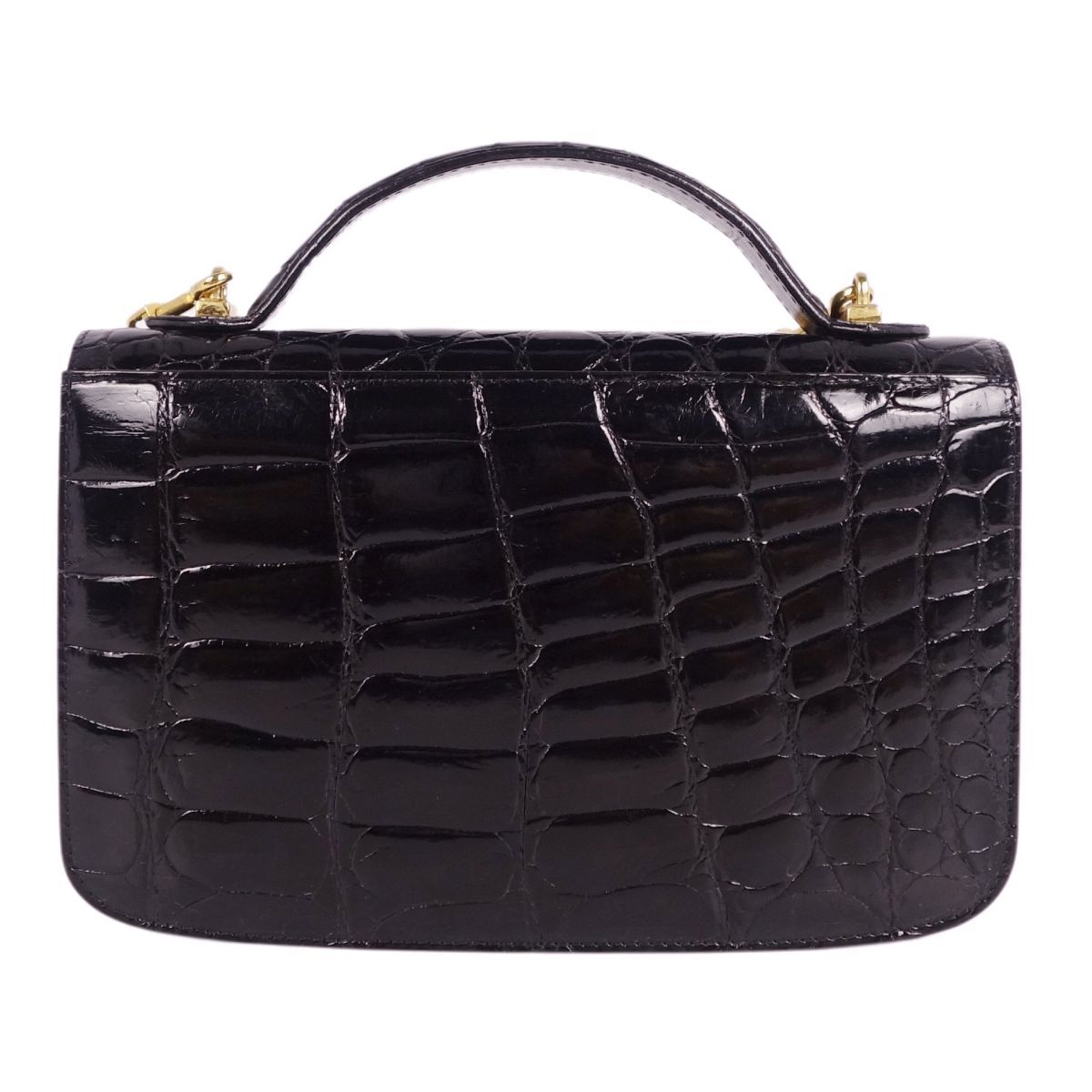 | クロコダイル CROCODILE バッグ ハンドバッグ ミニ ストラップ シャイニークロコ ワニ革 鞄 カバン レディース ブラック |