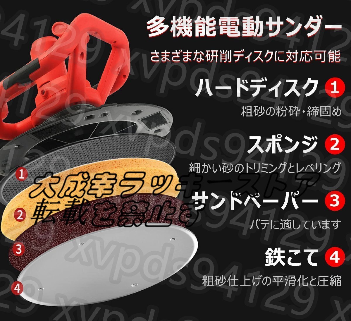 電気サンダー セメント ポリッシャー 充電式 ハンドヘルド乾式壁サンダー コードレス 壁面平滑化研磨機 デジタル表示付き 6段変速 大直径