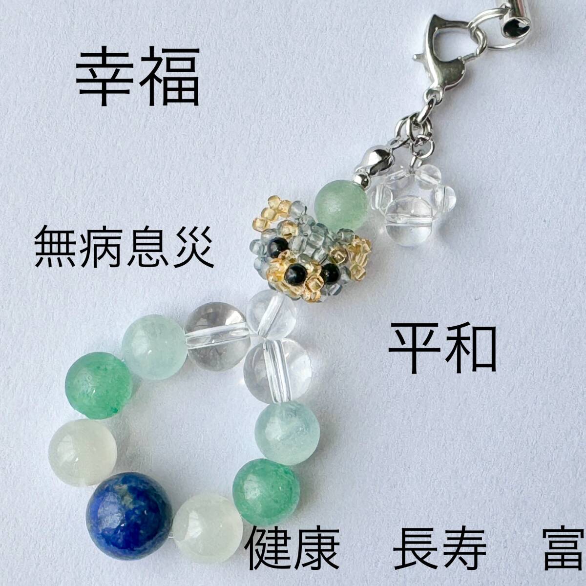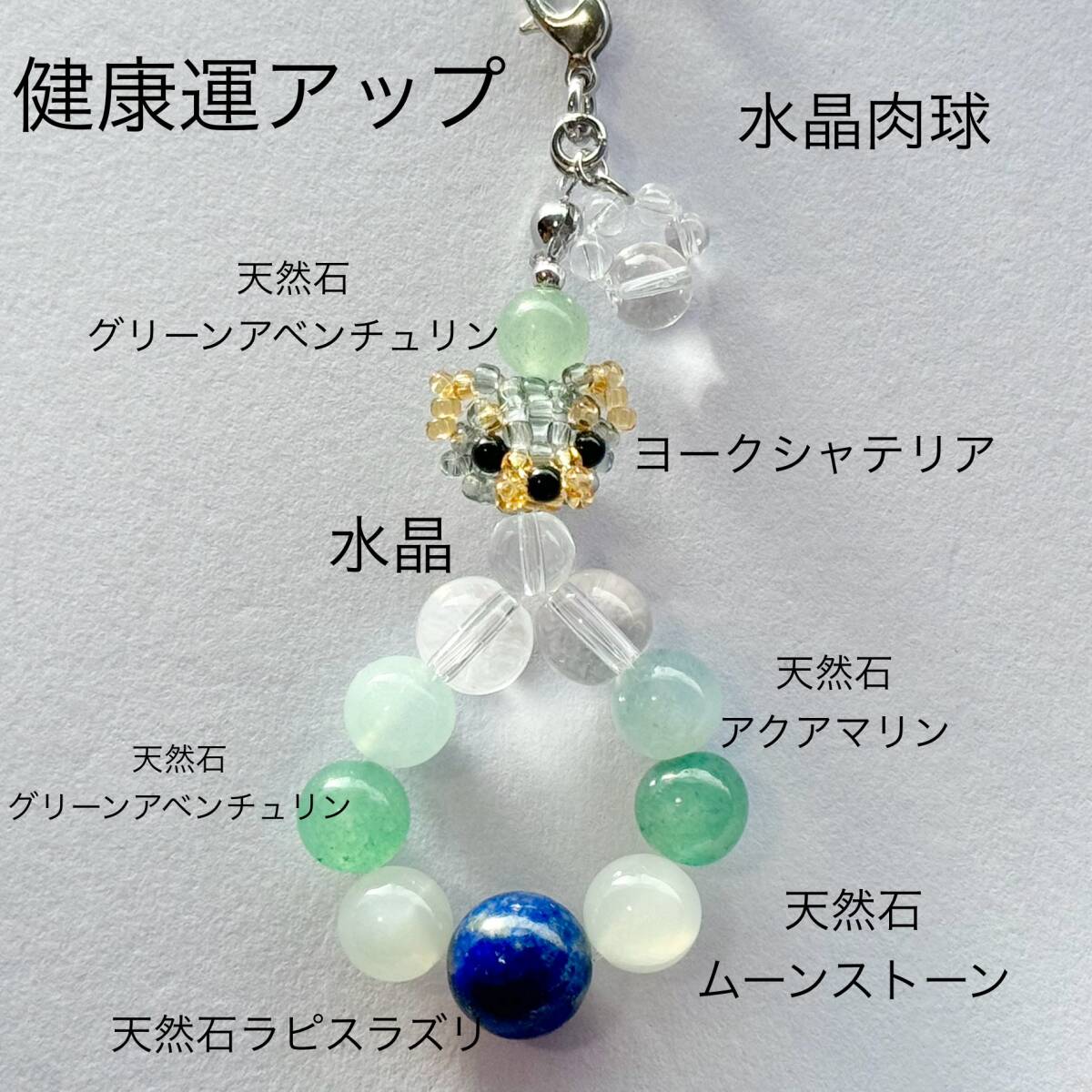 天然石アクアマリン、天然石グリーンアベンチュリン、水晶のストラップ