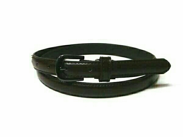 ピンバックル使用シンプルデザインのブラウンカラー牛革使用レディーススリムベルトです。