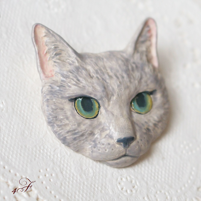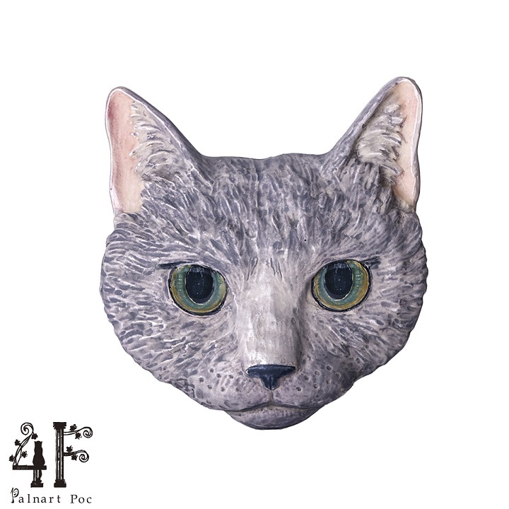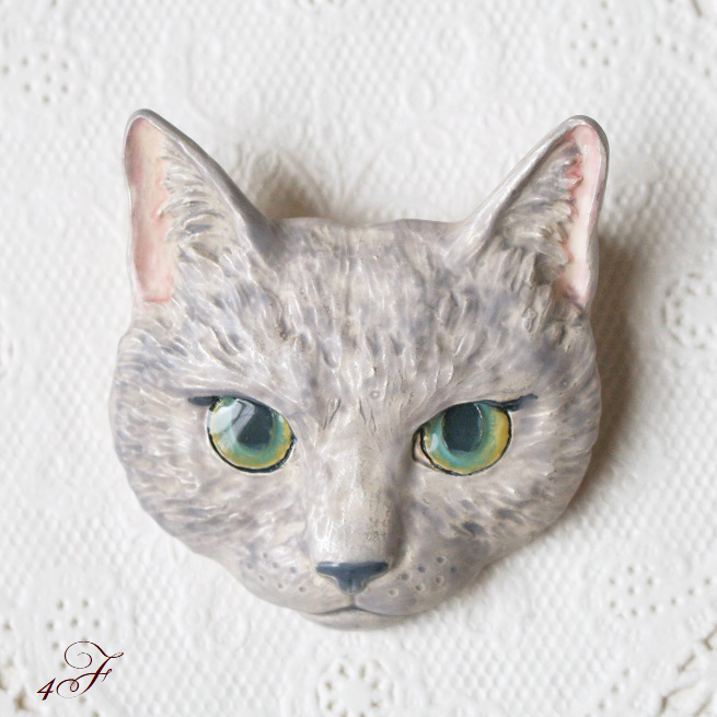 愛くるしい表情の猫のシンクレアブローチ ( 灰猫 ) です。