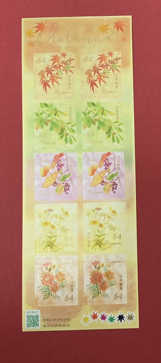 記念切手 ♪ グリーティング オータム 秋 令和4年 84円×10枚 シールタイプ(管理KK264)