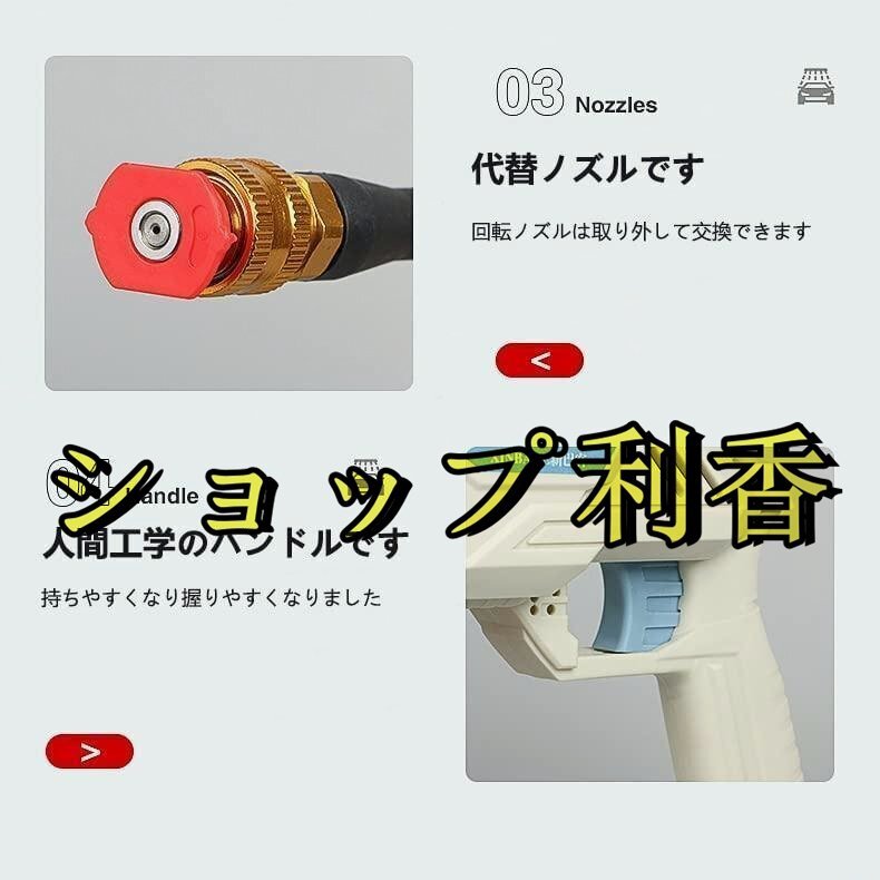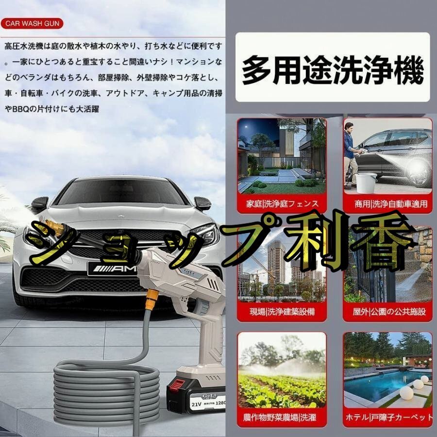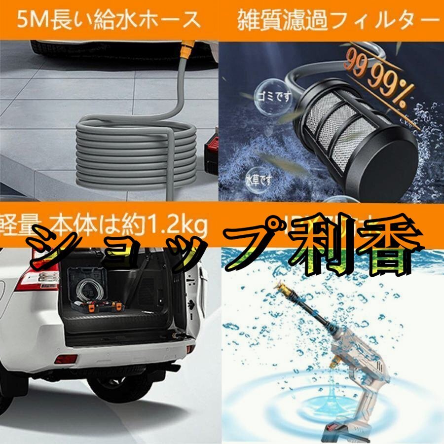 【高性能ハイパワー】高圧洗浄機のガンと本体が一体化した使い勝手の良いハンディウォッシャー。吐出圧力5Mpaのパワフルな高圧噴射で、ガンコな汚れを洗い流す高圧洗浄機です。家庭用洗浄機は高性能なパワーモーターを搭載して、水を素早く吸入・加圧して噴射します。多機能洗車ガンセット内容:本体、充電器、リチウムイオン充電バッテリー*2、回転ノズル、方向調整ノズル、フォームポット、フィルター付き専用給水管(5m)、ペットボトル用給水コネクター、収納箱.(ご注意:この商品はマキタブランドの製品ではありませんが、マキタバッテリーを使用することができます。)