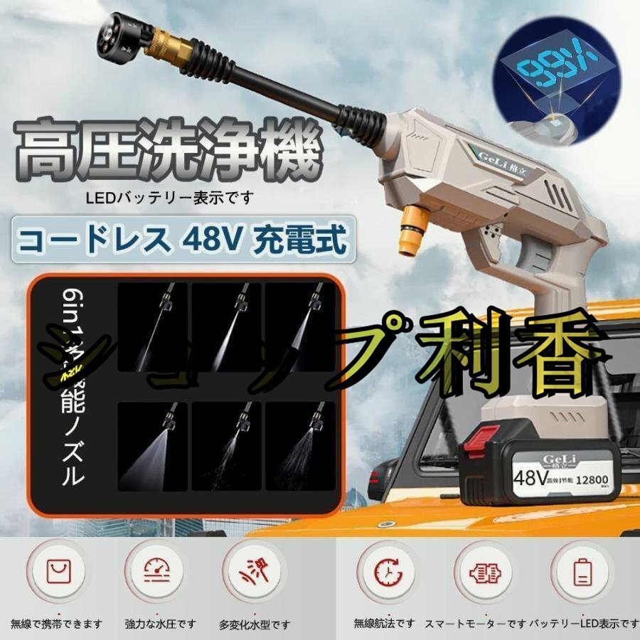 充電式 高圧洗浄機 コードレス 5MPa最大吐出圧力 水噴射量5.2L/min 6種類噴射モード 6-in-1ノズル洗車 強力噴射 48V大容量バッテリー付き