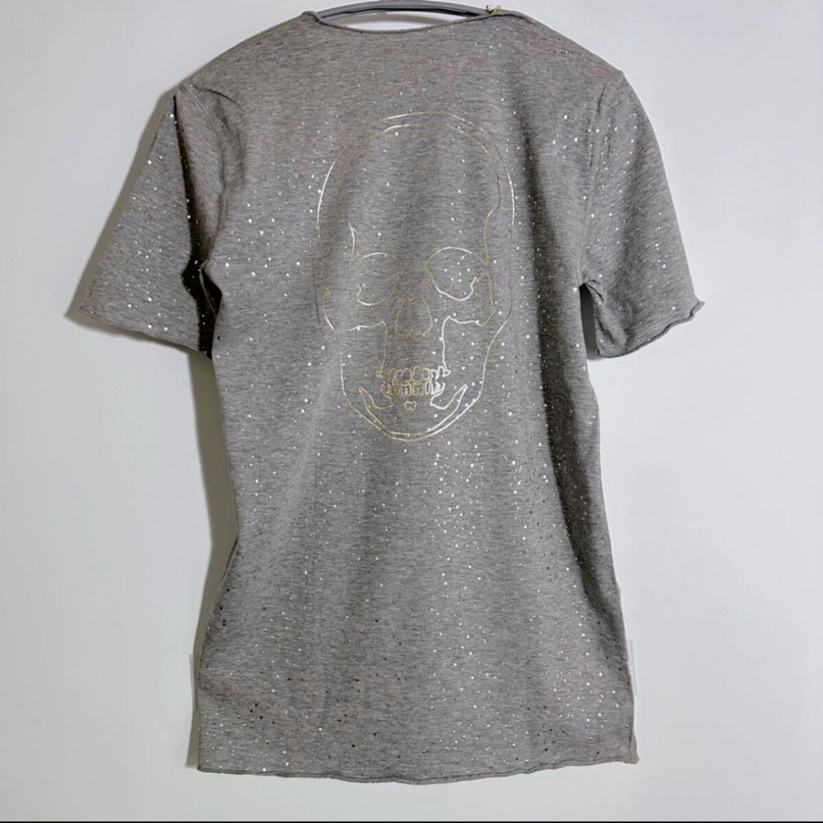 ブランド象徴のスカルモチーフがシルバー箔でプリント