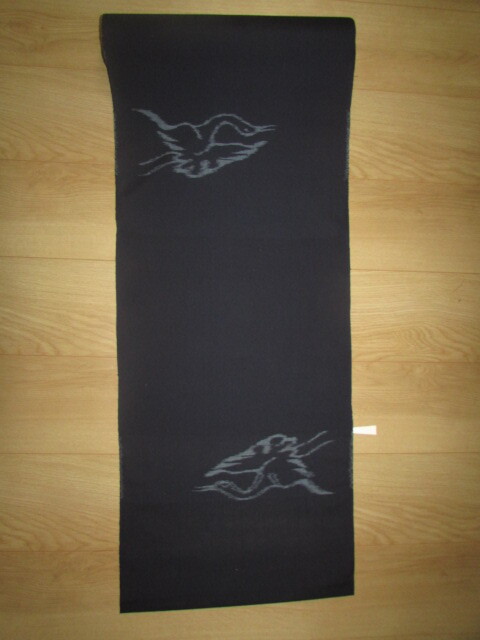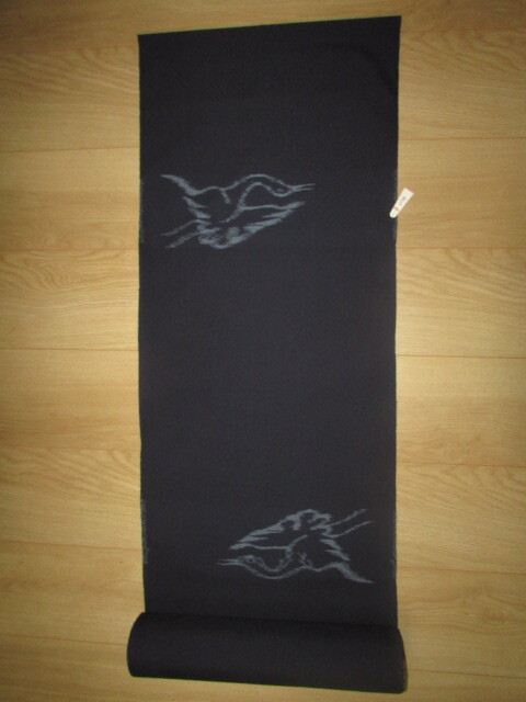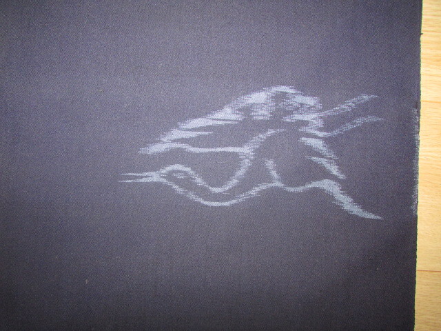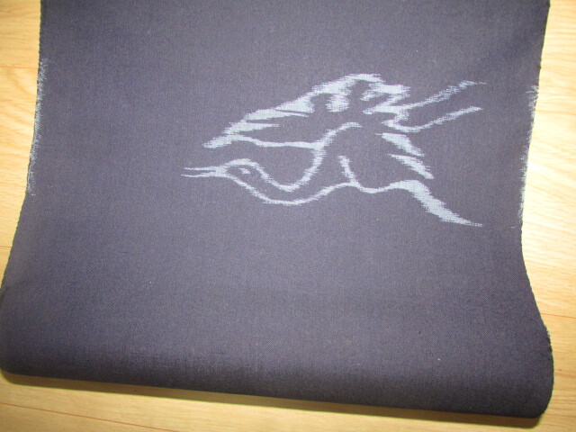 即決商品・(着物屋・蔵出し)(古布・藍地に目出度い鶴模様織り出し未使用着尺反物)