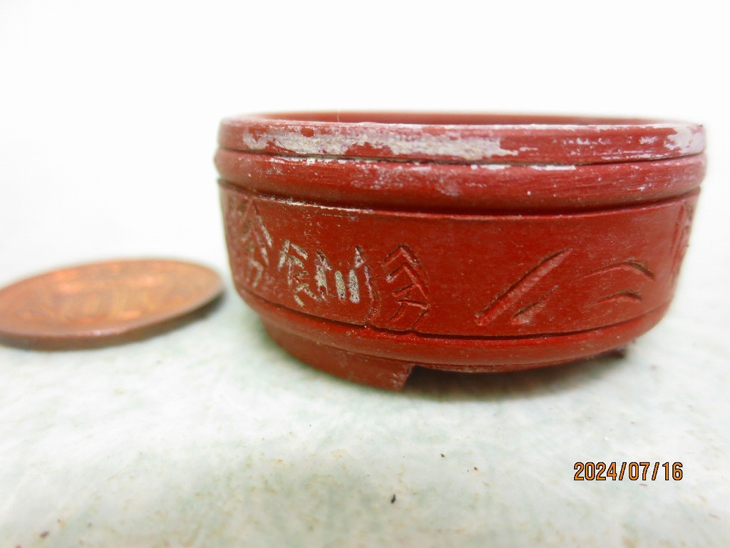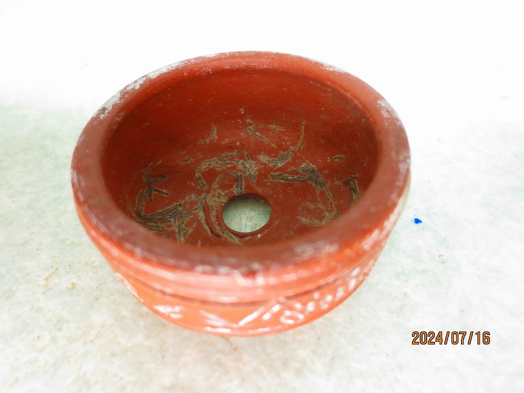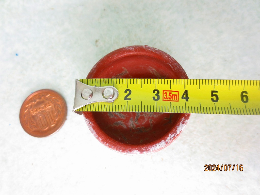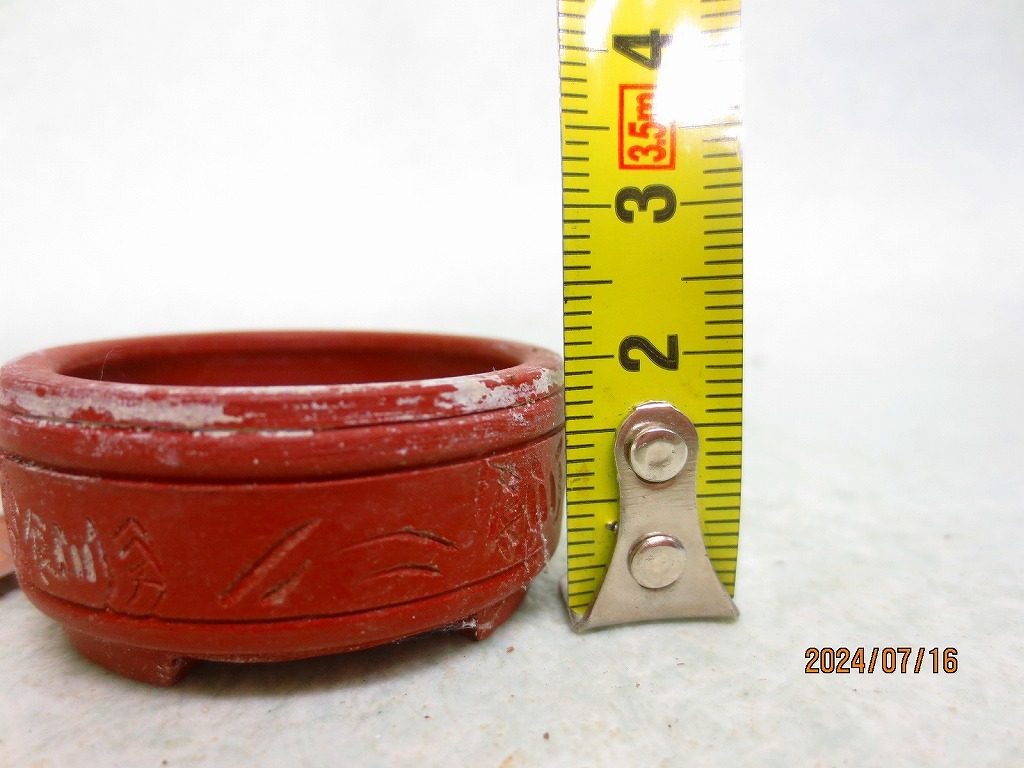 [緑の市場] 小品盆栽鉢 泥珠 模様入朱泥丸鉢 4.2㎝ (J093)送料無料/有料(ゆうパック)選択可※無料はメール便ポスト投函 ゆうメール便選択は送料無料で3㎝厚みの箱で発送します。(3㎝で入らない場合は定形外郵便で発送します。)ポスト投函ですから配送日時指定はできません。補償なしです。ゆうパック選択は送料有料で補償あります。複数点追加できます。*盆栽と同梱包ご希望の際は送料不要ですが別途取引メッセージでお知らせください。 ヤフオクの取引においてメッセージは特に必要ありません。挨拶などを省略できる取引システムですし取引ナビの通知で進行状況が判るので都度の連絡(送金や受け取りのメッセージ)は不要です。特別な連絡事項があればお知らせください。双方合理的に進めましょう。また、お急ぎの方は入札をご遠慮ください。業務時間内での対応になります(土日祝休業)。 寸法は一緒に撮影しているスケールまたは比較物をご参照ください。 飲料缶は高さ約10㎝、直径約5㎝です。 500mlペットボトルは高さ約21㎝です。 僅かなカスレ傷がある前提でお求めください。 画像(撮影時)では小細部まで表現できないので完璧品をお求めの方は入札ご遠慮ください。 |