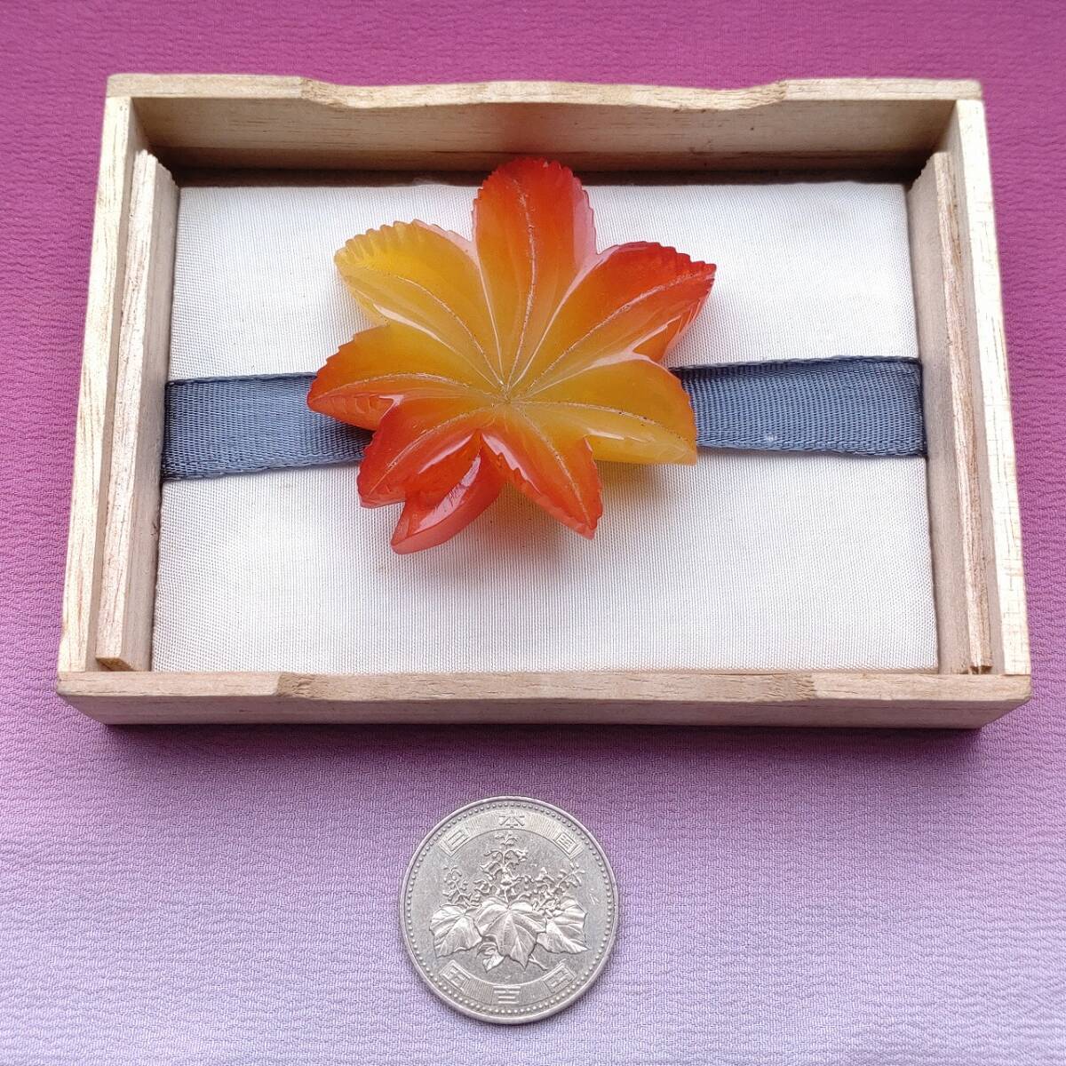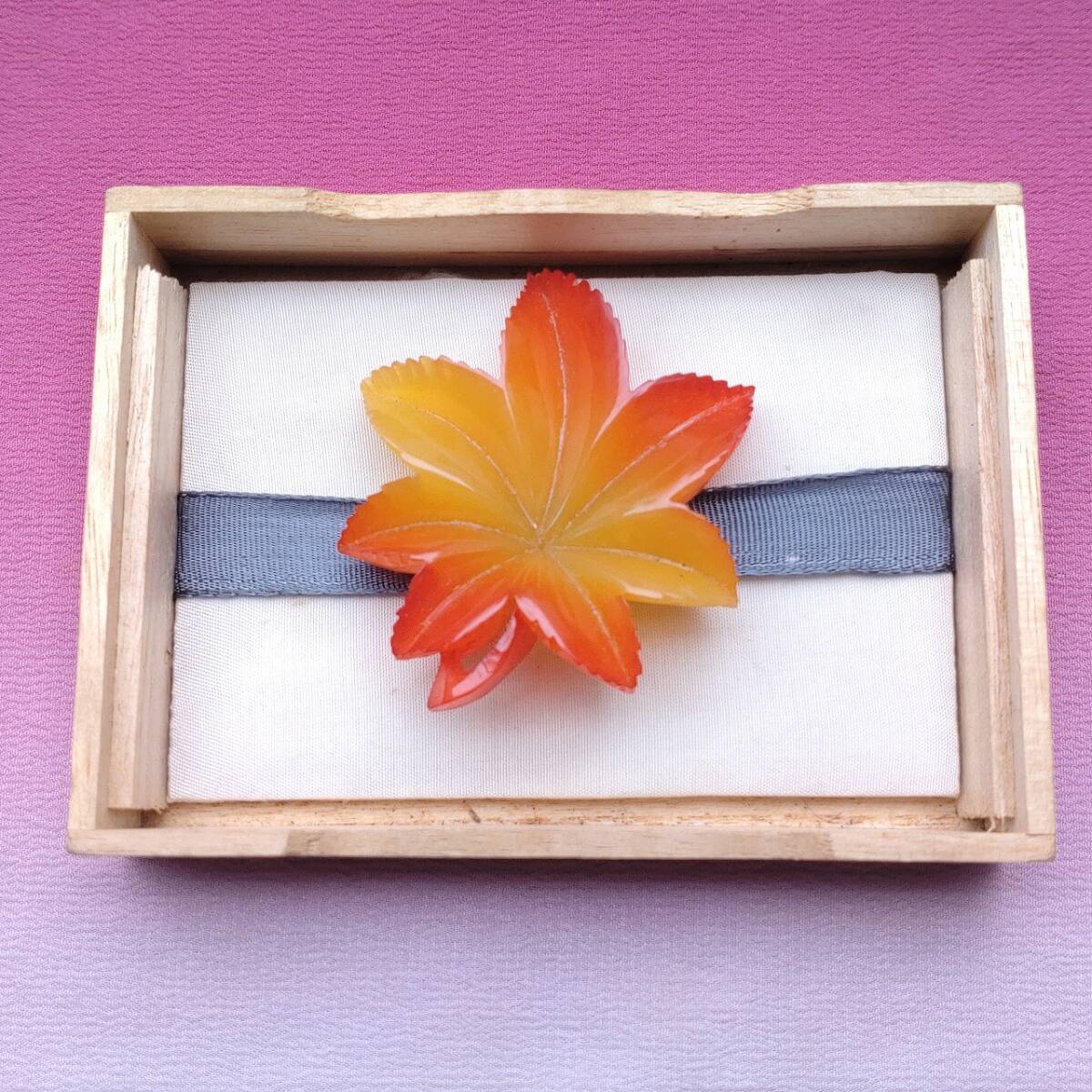 帯留め 紅葉 オレンジ色 約5cm 和装 小物 プラスチック 箱蓋無し 未使用長期保管品  【4516】【b】