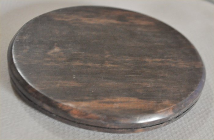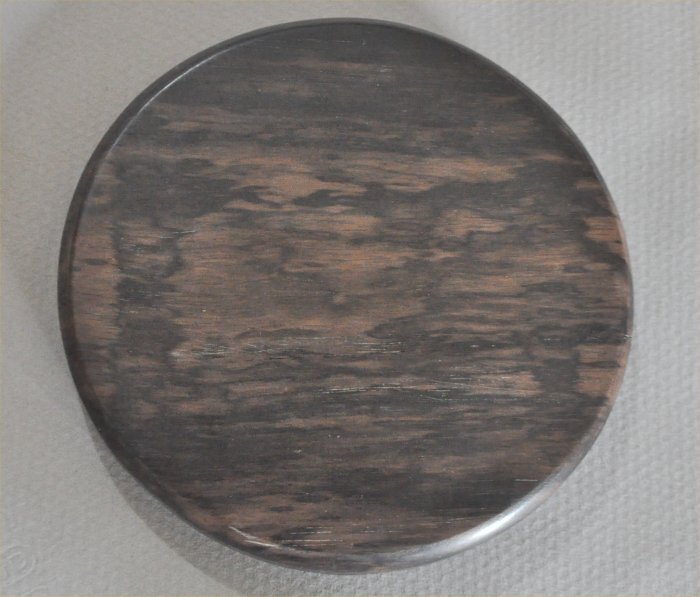 ナンタケットバスケット用の黒檀のラウンドベースサイズは100mm径厚み11mm磨き仕上げ模様が浮き出た縞黒檀のラウンドベースです。