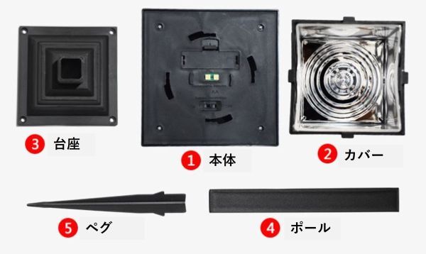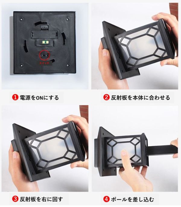本体スイッチをオンにしてから、本体を組み立てて日光が当たる場所(地面)にさすだけです。