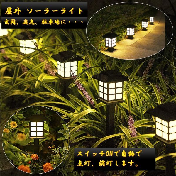 ソーラーライト 2 昼白色 数量1個 480mm×135mm×135mm 門柱灯 自動点灯 和風 防雨型 門灯 灯篭タイプ 防水 庭園灯 5LED ガーデンライト