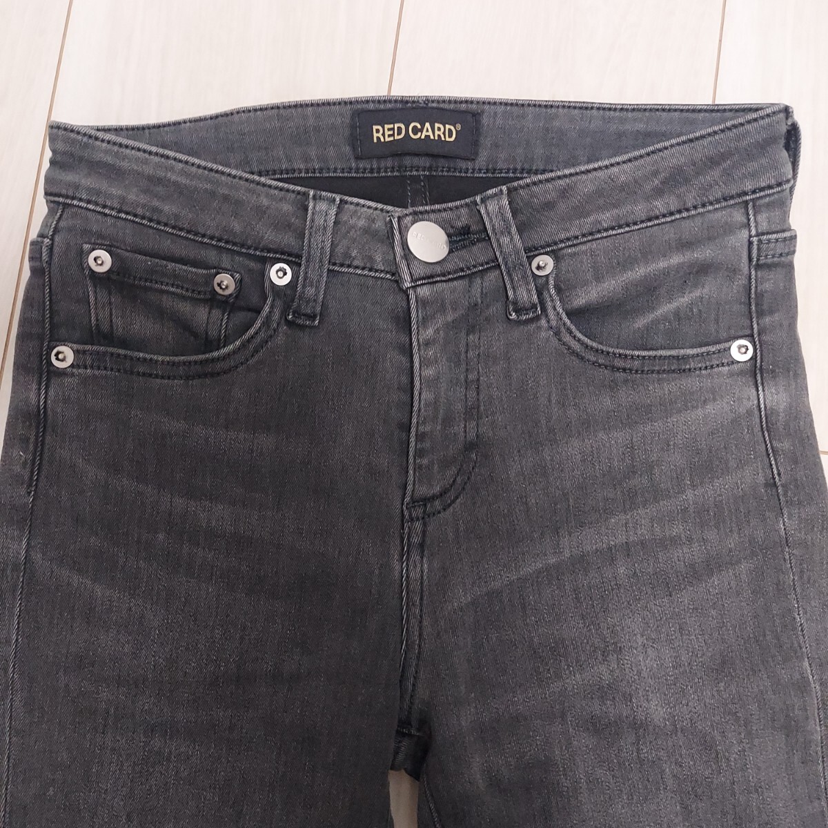こちらは、RED CARDの中で最も細いスキニーモデル。足首のもたつきをなくし、よりスッキリとあか抜けて見えるレングスに進化。ワンピースとのレイヤリングもおすすめです。ヒールはもちろん、スニーカーやサンダルに合わせても大人のこなれたきれいめカジュアルになるのはRED CARDならでは。