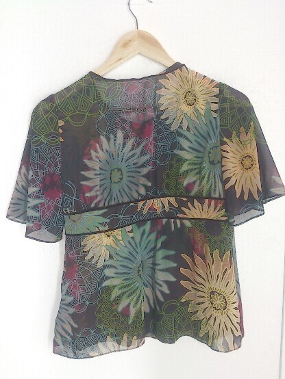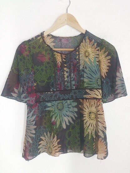 ◇ ◎ GEORGES RECH ジョルジュレッシュ 総柄 半袖 ブラウス カットソー サイズ36 ブラック マルチ レディース