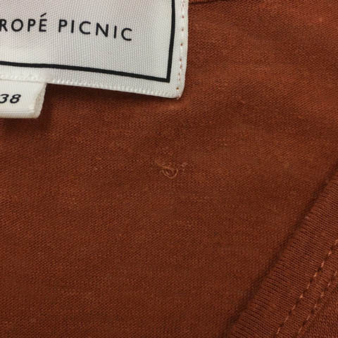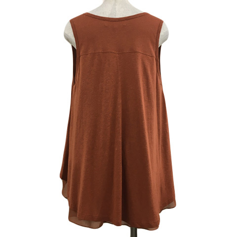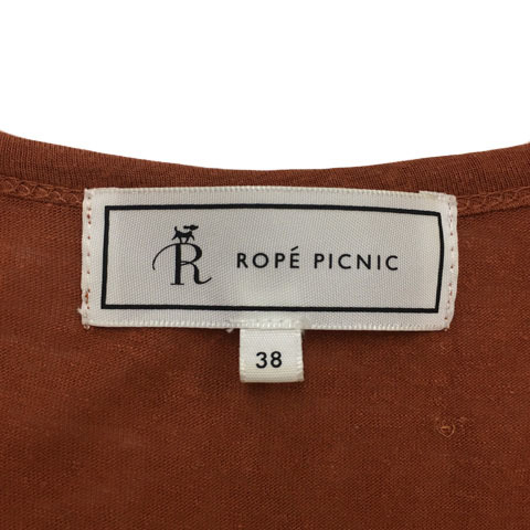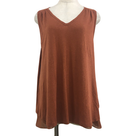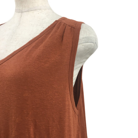 ロペピクニック カットソー プルオーバー Vネック リネン混 無地 レイヤード風 ノースリーブ 38 茶 テラコッタ ブラウン レディース