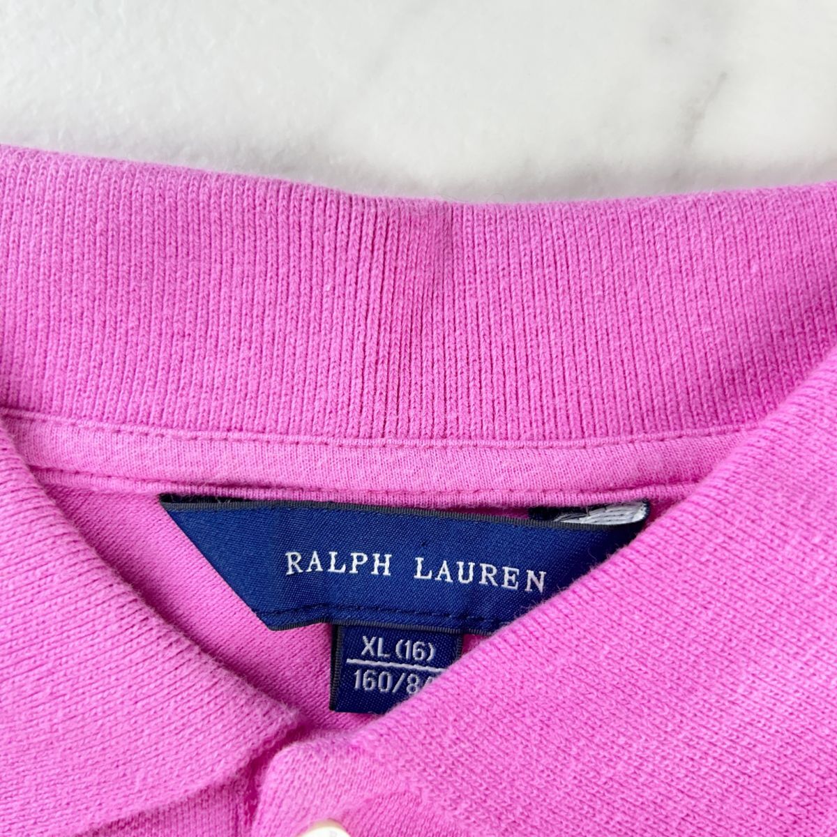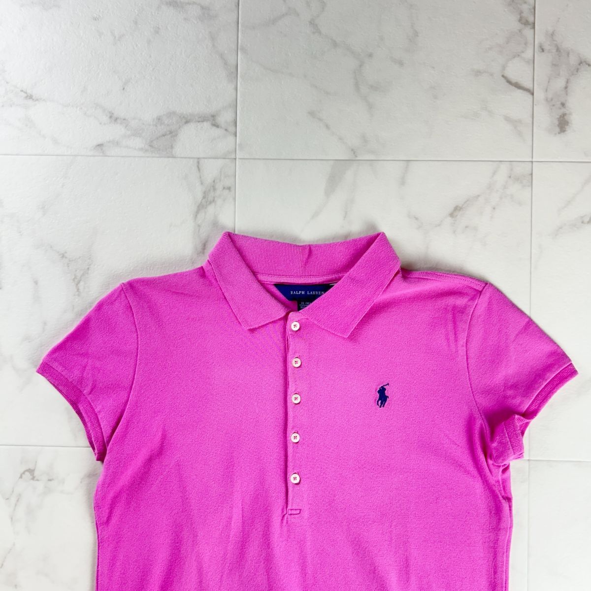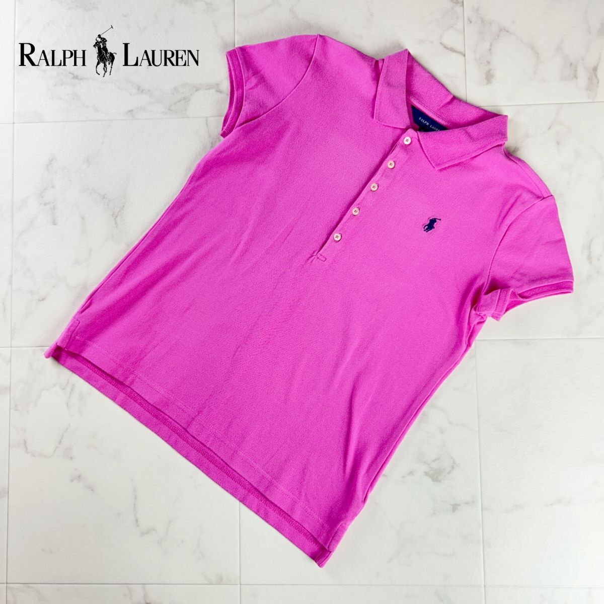 美品 RALPH LAUREN ラルフ ローレン ポロシャツ ロゴ刺繍 半袖カットソー トップス キッズ 子供服 ピンク サイズXL*RC1168