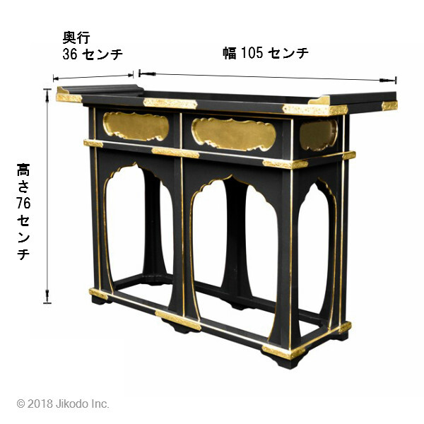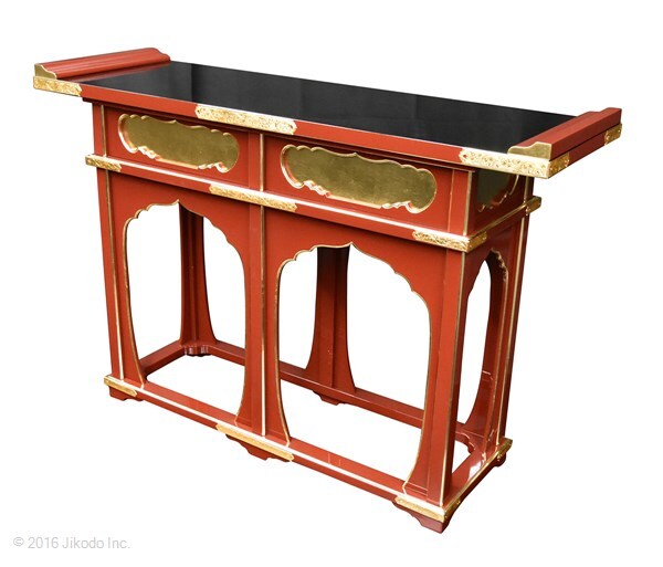 【寺院仏具】朱塗り 立焼香机(金具付き) 幅約105センチ 国内自社工場制作 木製高級寺院仏具通販(受注生産品)(商品番号11073s)