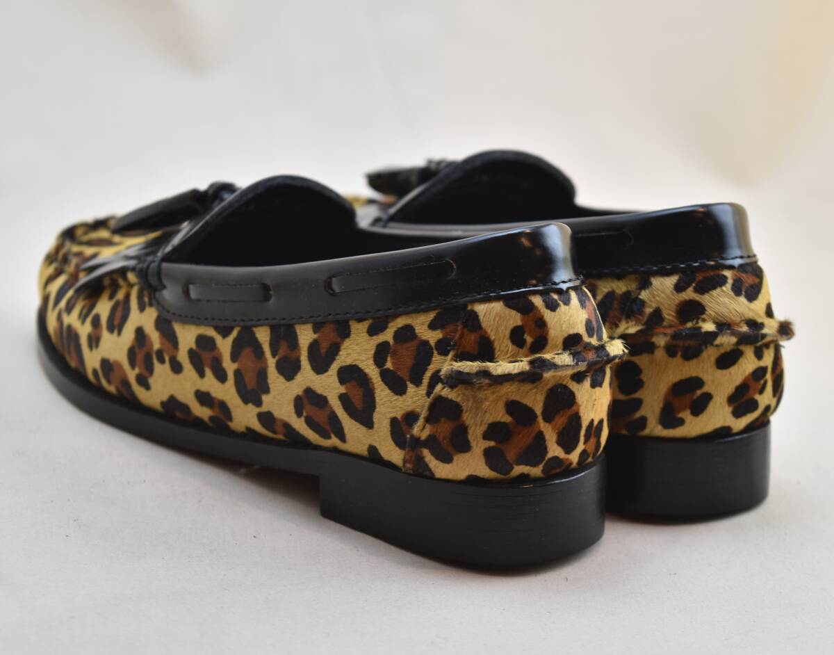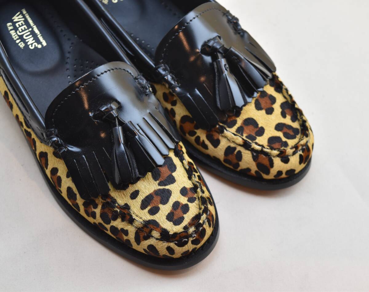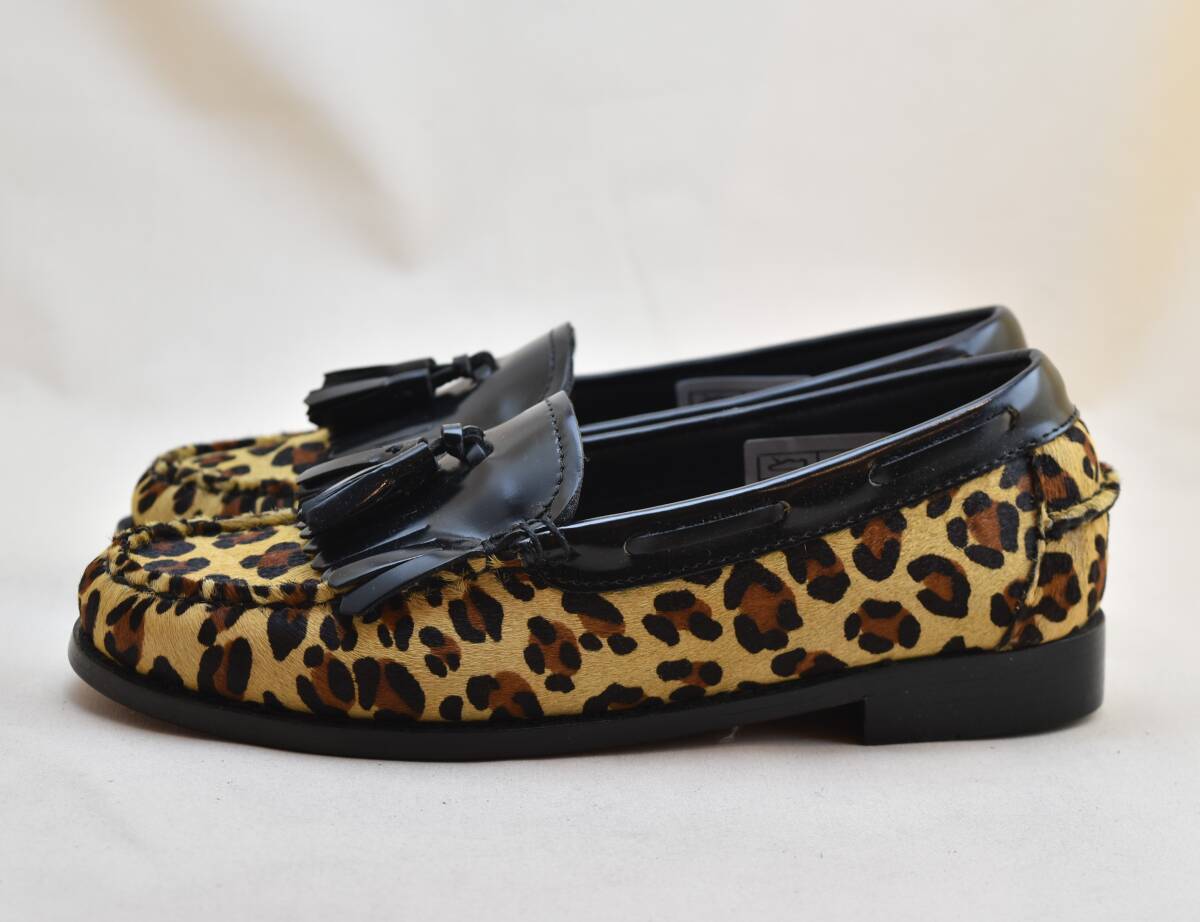 G.H. BASS バス レディス キルトタッセルローファー ブラックレザー×レオパード柄ファー US5 22-22.5cm相当 未使用品