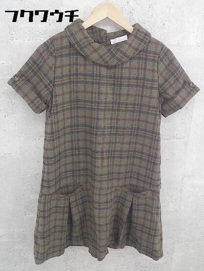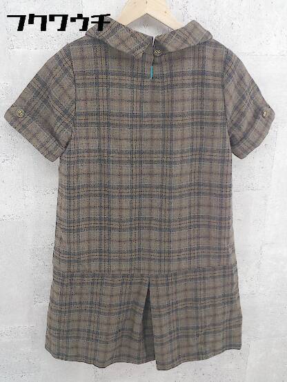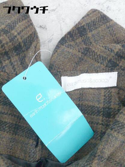 ◇ ●美品● ◎ earth music&ecology タグ付き チェック 半袖 膝丈 ワンピース サイズF ブラウン ブラック レディース