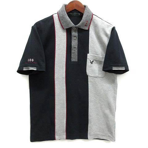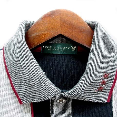 ライル&スコット LYLE&SCOTT 鹿の子 切替 ポロシャツ 半袖 アーガイル刺繍 グレー ブラック 黒 S メンズ