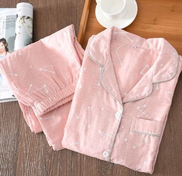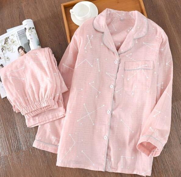 OHJ1666☆秋冬レディース M~XLサイズ 春秋 薄手コットン 2層ガーゼ 素材 綿 柔らか肌さわり 通気 パジャマ 部屋着 ル-ムウエア 心地良い