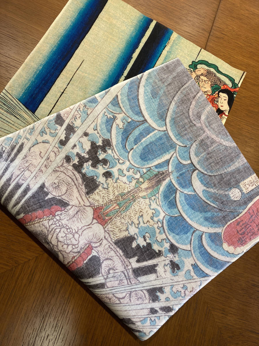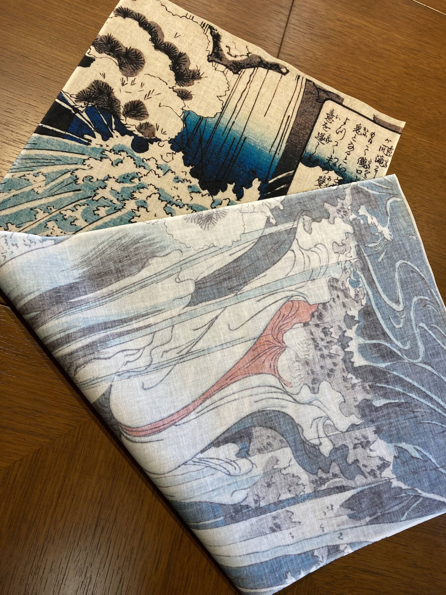 最高級の手ぬぐい生地の特岡に反応染料で捺染プリントしています。