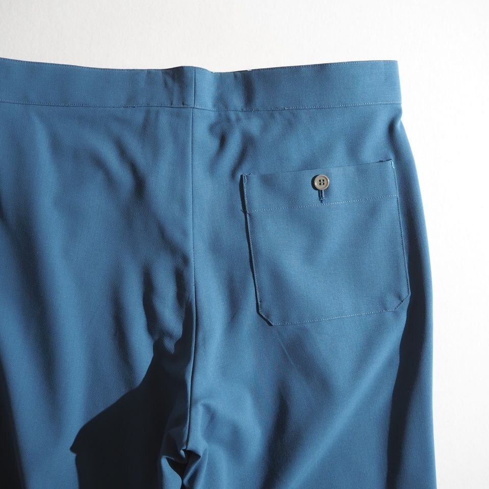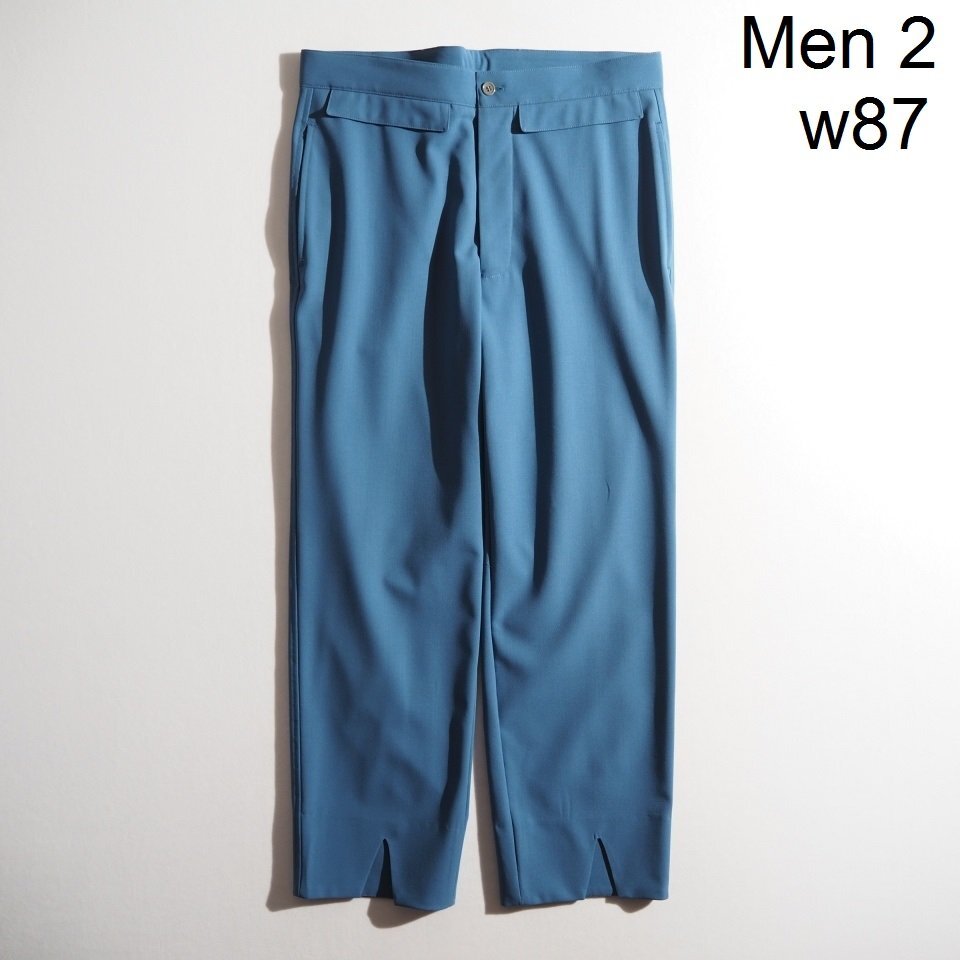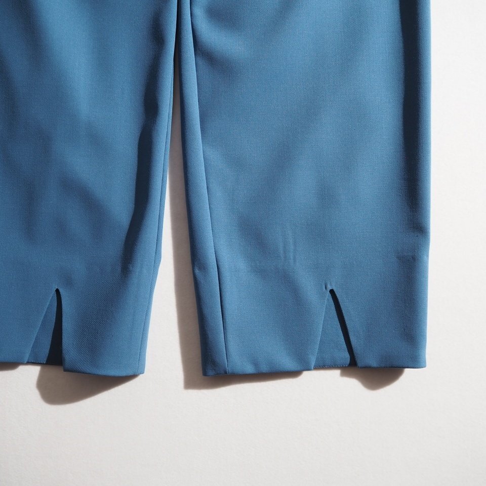 ハイツイストウールギャバ ベルトレス 裾スリットパンツ ブルー 2/M