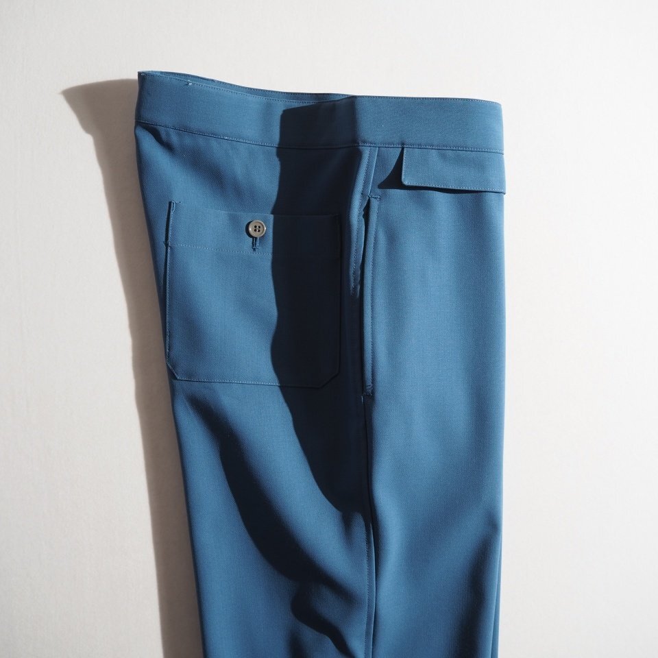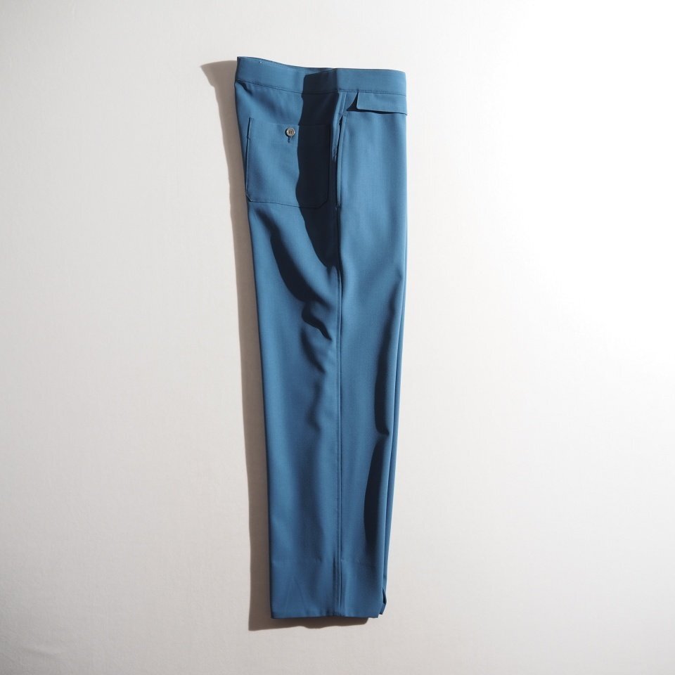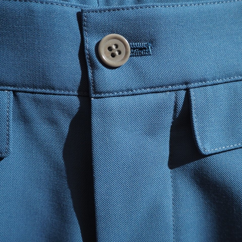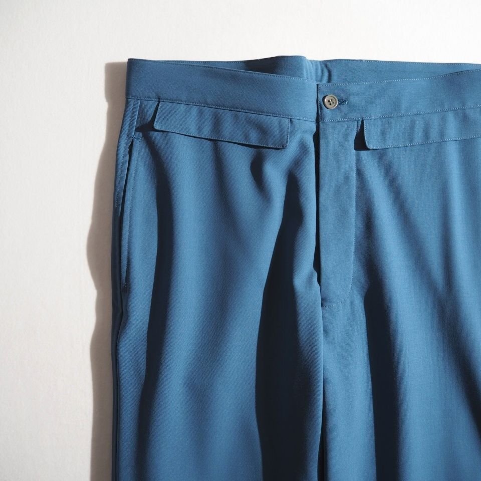 ハイツイストウールギャバ ベルトレス 裾スリットパンツ ブルー 2/M