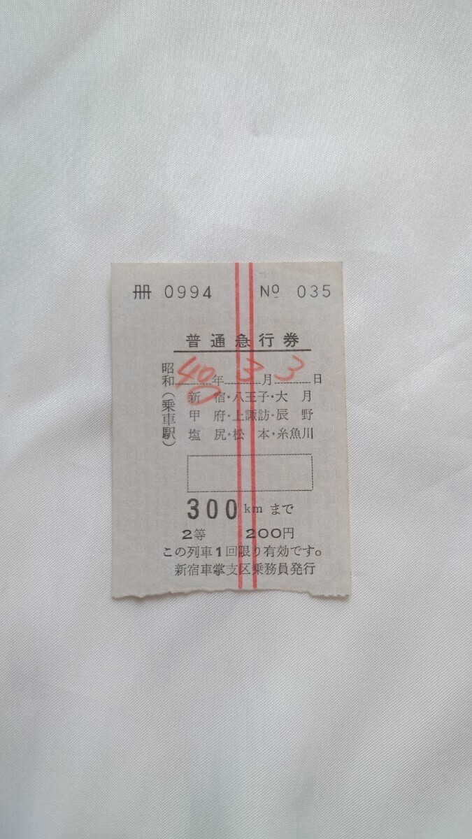 ▼国鉄新宿車掌支区発行▼普通急行券2等▼軟券昭和40年