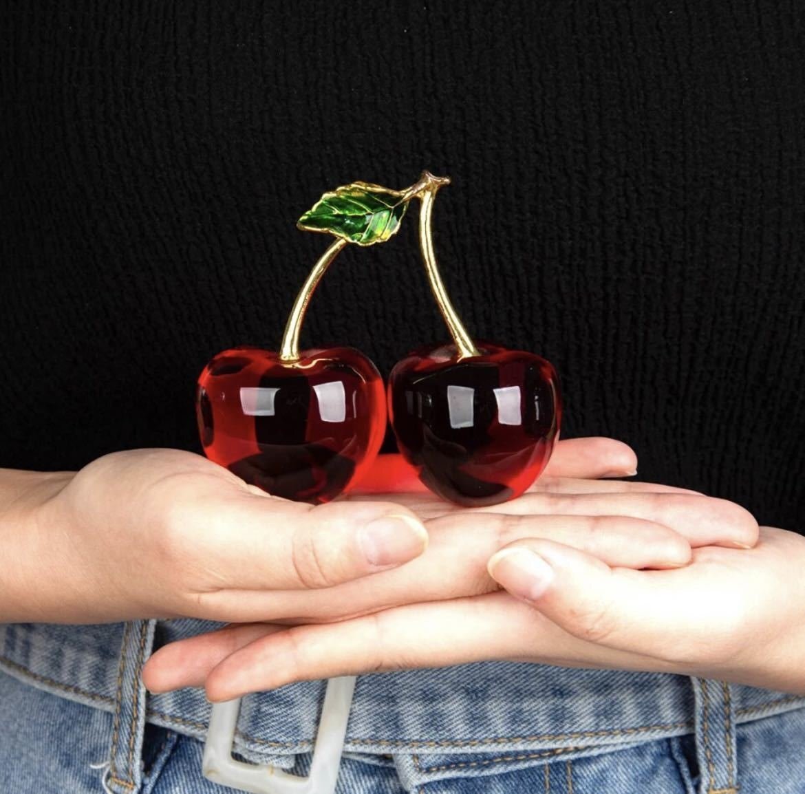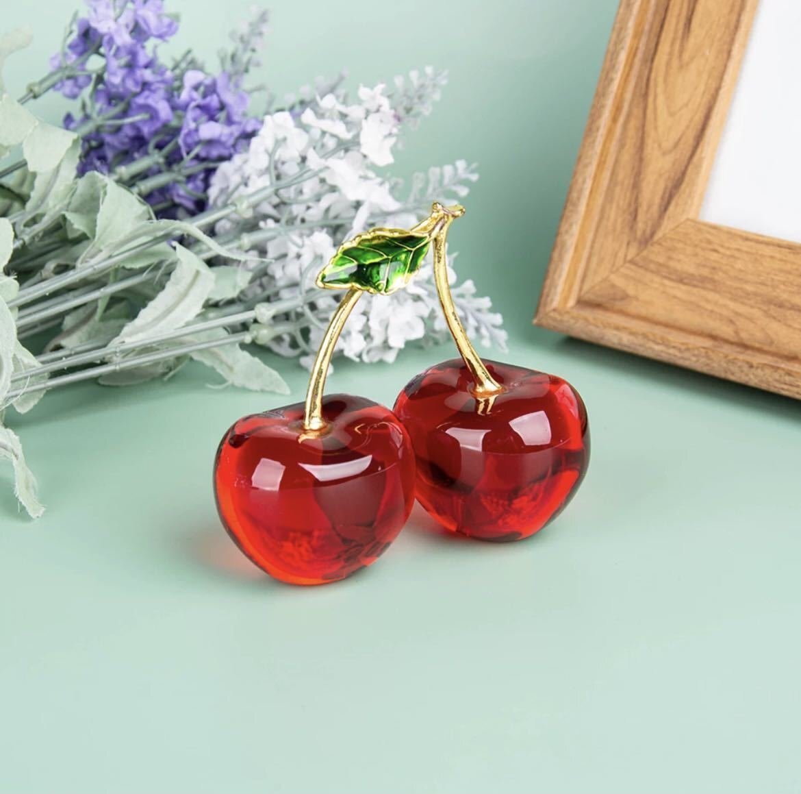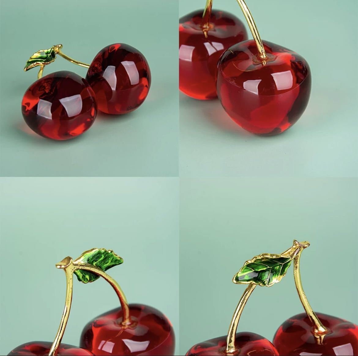 OHJ1585☆さくらんぼ チェリー ガラス クリスタル インテリア オブジェ リビング おしゃれ 可愛い アクセサリー アンティーク 置物 小物