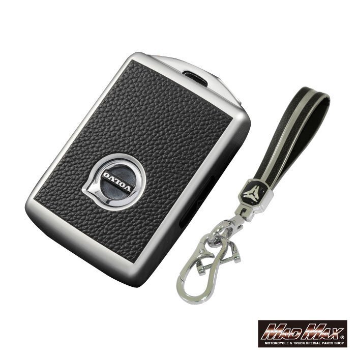 ボルボ専用 レザー調 TYPE A 4ボタン式 TPUソフト スマートキーケース シルバー