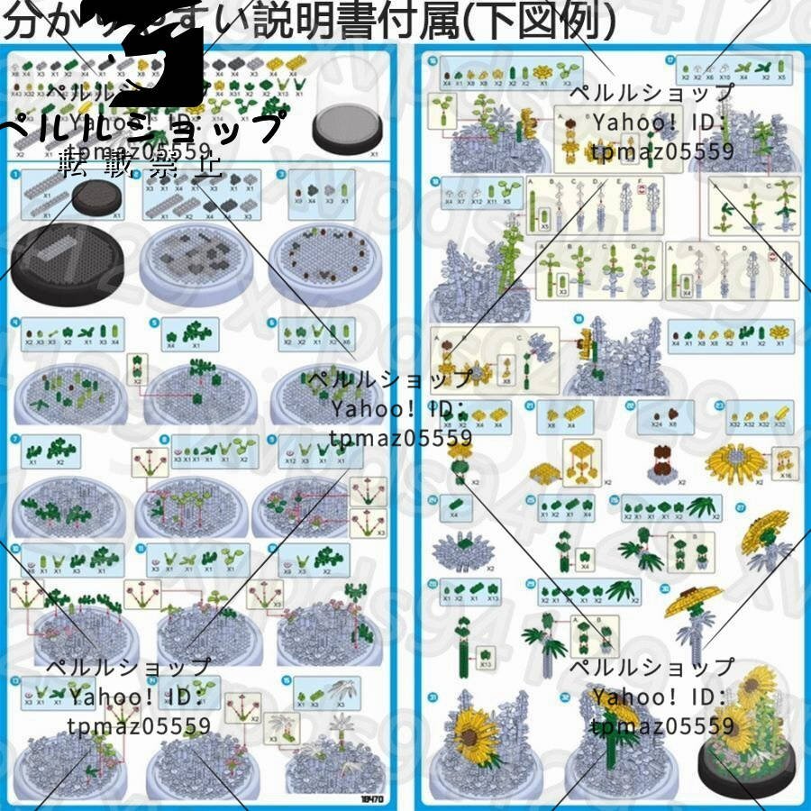 【初心者でも花作り&没入体験】組み立て簡単!分かりやすい図解・番号の説明書が付きますが、初めてブロックを体験する初心者やお子様にも安心して楽しめます。家で長閑な瞬間をお楽しみください!勉強の合間に休憩したら、仕事の合間にストレス解消したりするなど、遊びながら、ブロック花に癒されます。