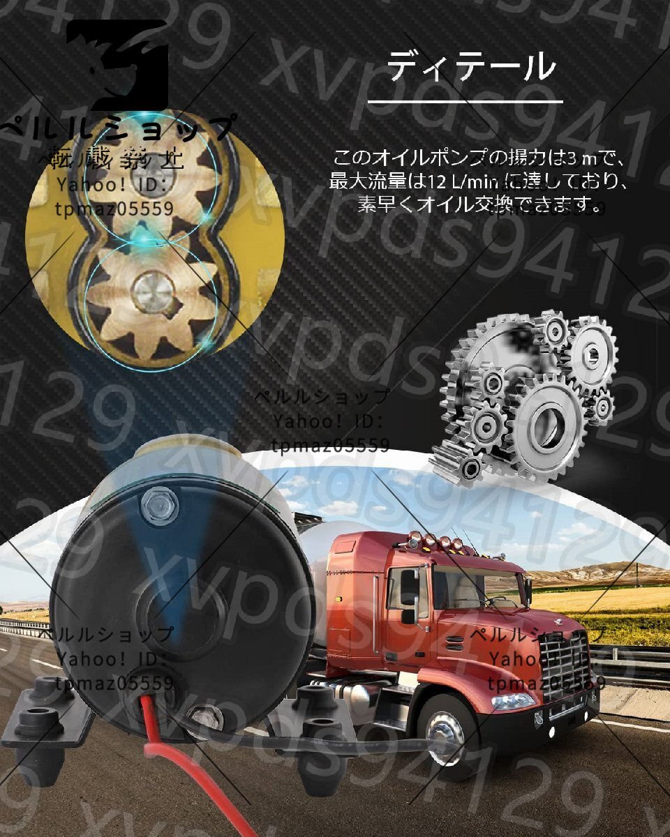 オイルポンプ 電動 12V 12L/min 小型 オイル交換 エンジンオイル 潤滑油 ケロシン 重機 ドラム缶 オイルチェンジャー ギアポンプ