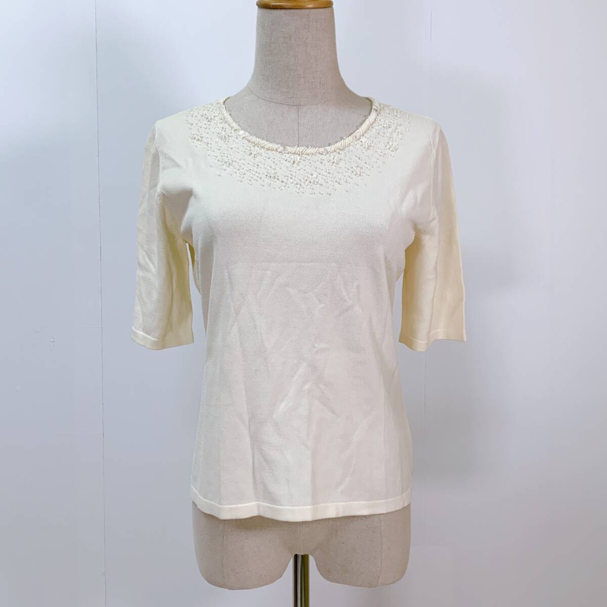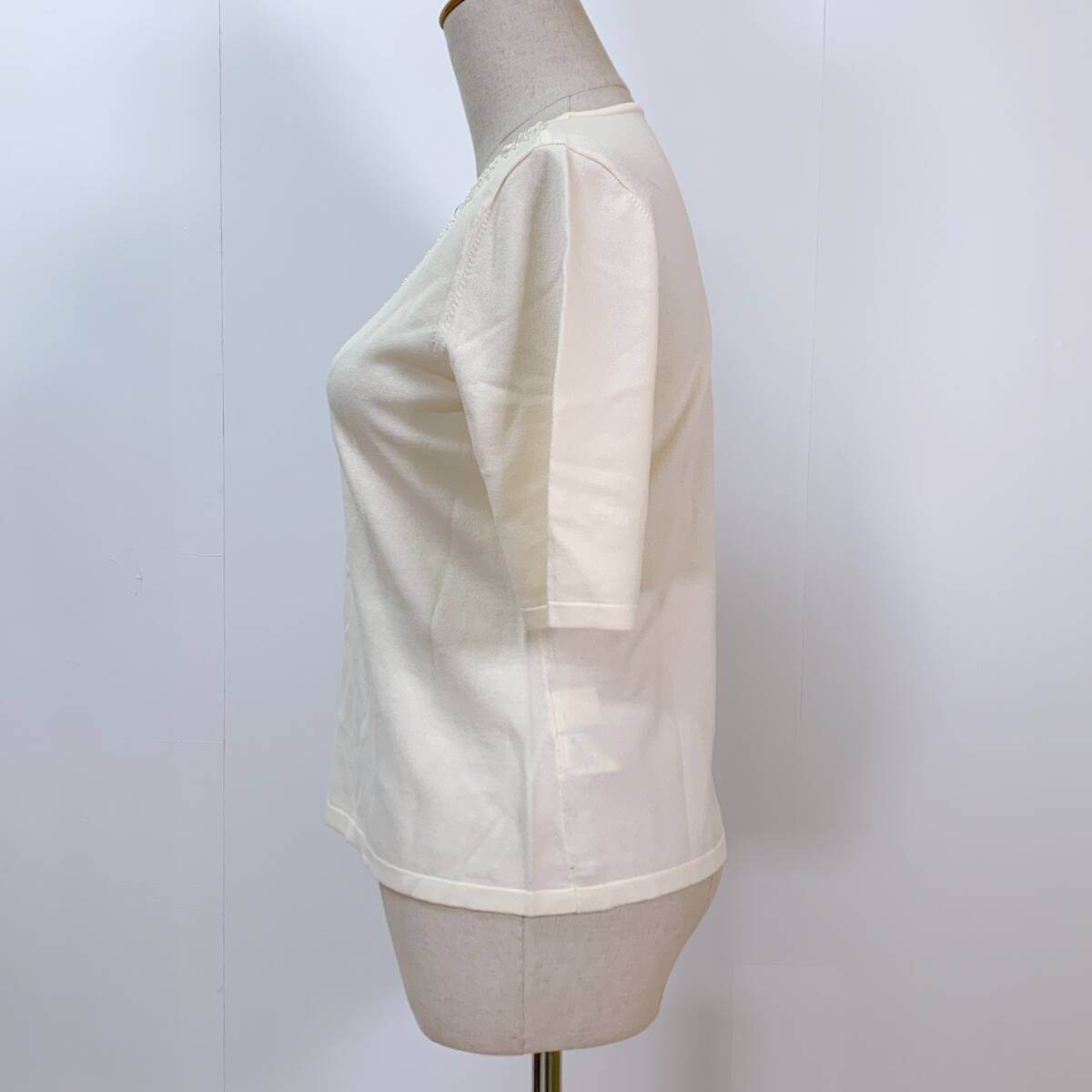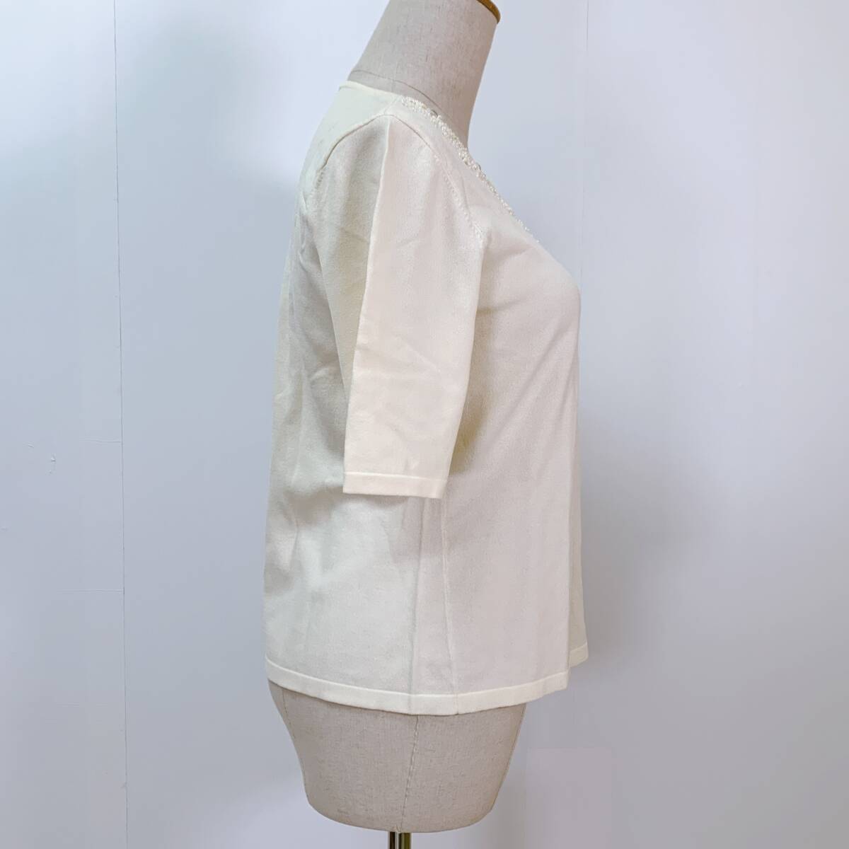 YH1137 BON CILIE レディース 半袖 ニットトップス サマーニット アイボリー Lサイズ ビジュー オフィス 丸首 薄手 かわいい 万能 USED