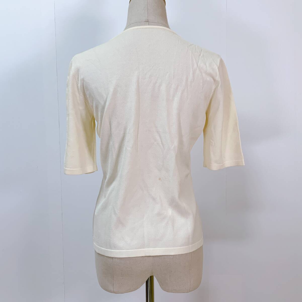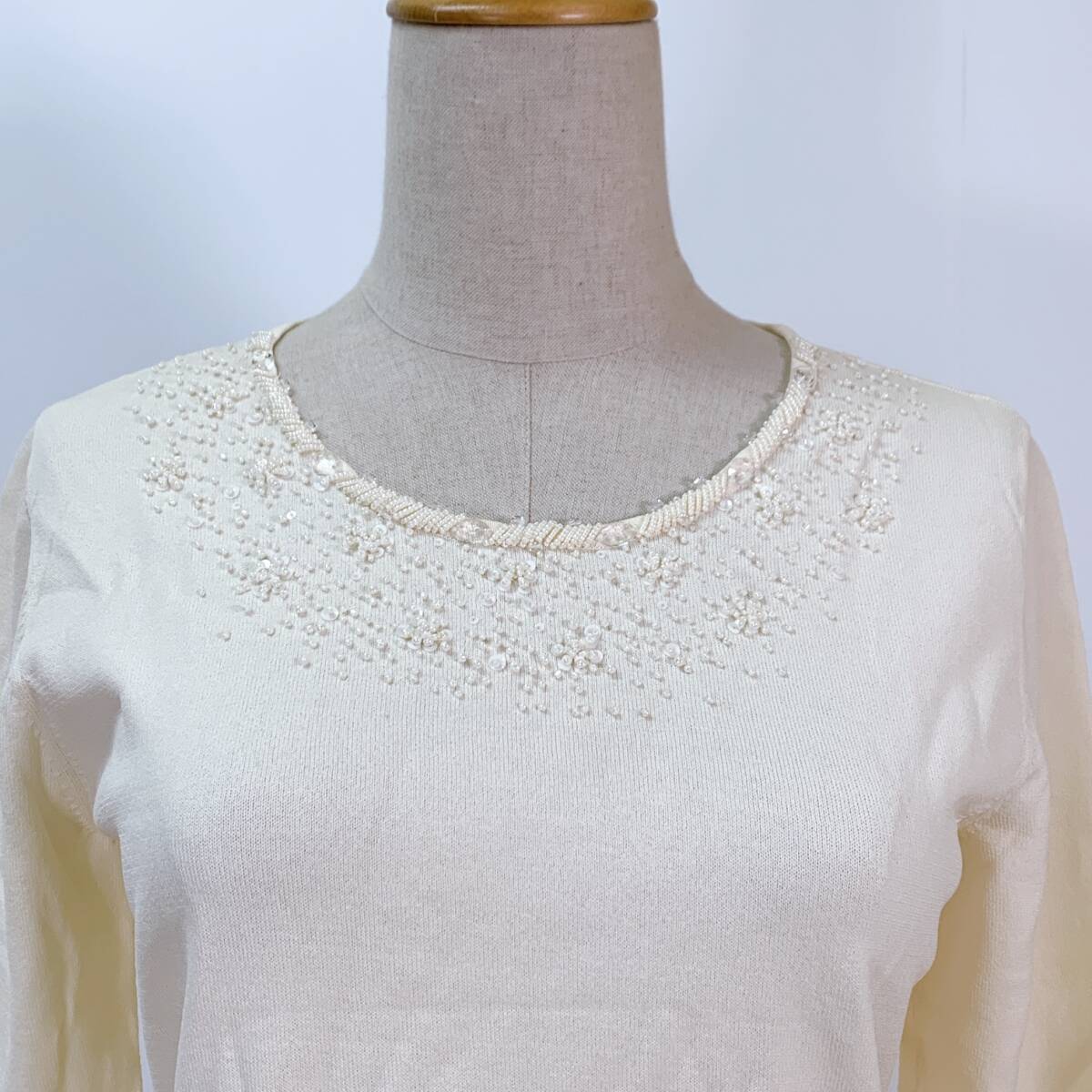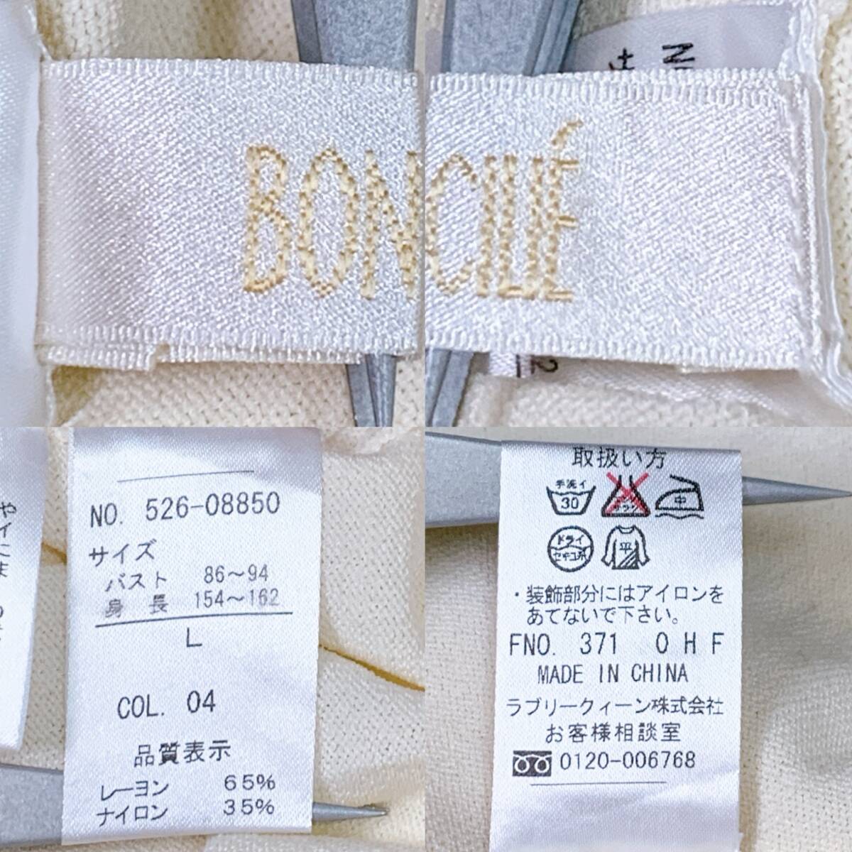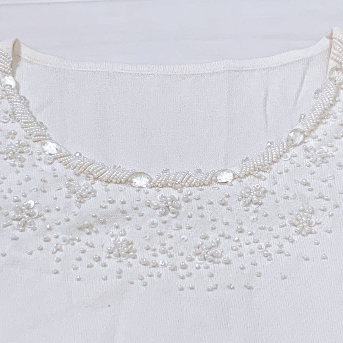 YH1137 BON CILIE レディース 半袖 ニットトップス サマーニット アイボリー Lサイズ ビジュー オフィス 丸首 薄手 かわいい 万能 USED