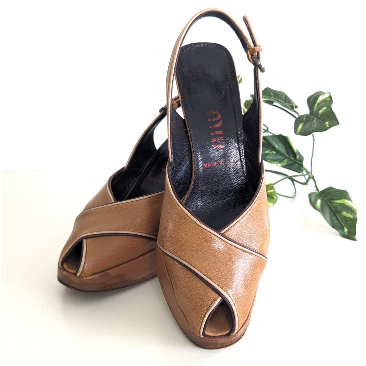 miumiu ミュウミュウ ヴィンテージ レザー ヒール サンダル パンプス ハイヒール 靴 シューズ VINTAGE アーカイブ archive イタリア製