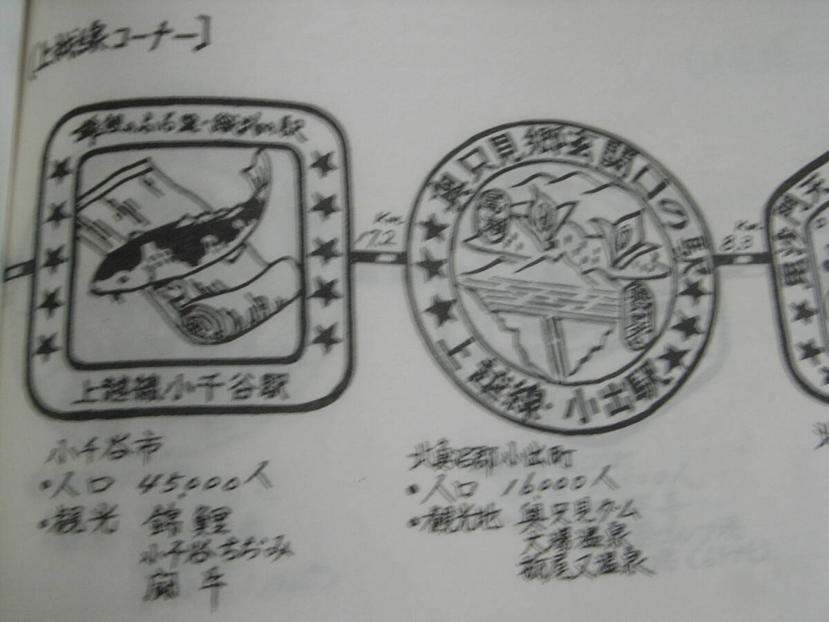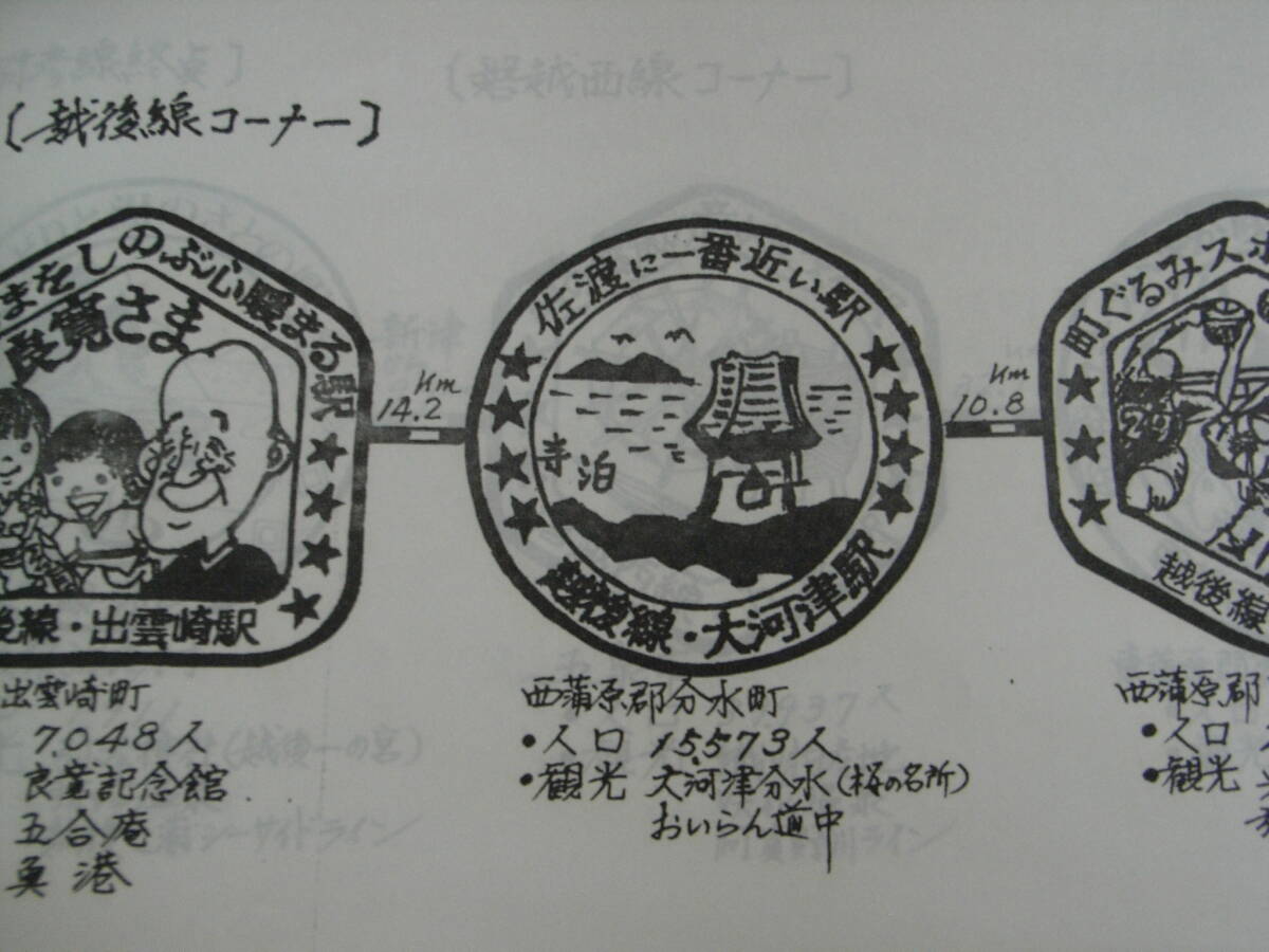 長岡駅オリジナルパンフレットです。どのような時期・場所で配布されたのかなど詳細は不明です。手書き印刷・14ページ・信越本線 直江津~新潟駅/羽越本線 新発田駅~酒田駅/上越線 小千谷駅~土合駅/只見線 大白川駅/信越線 高田駅・妙高高原駅/弥彦線 燕駅/越後線 出雲崎駅 大河津駅 吉田駅/弥彦駅/磐越西線 五泉~野沢駅/米坂線 小国駅・駅スタンプとその駅周辺観光地、市町村人口が記載されております