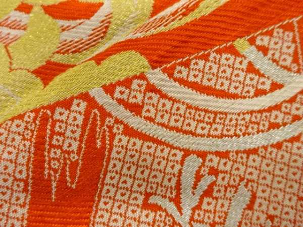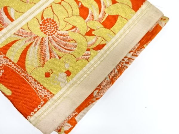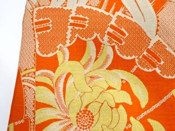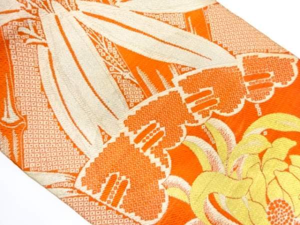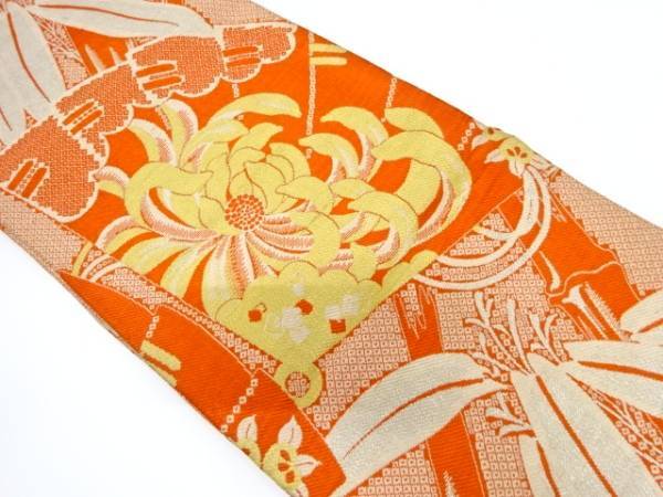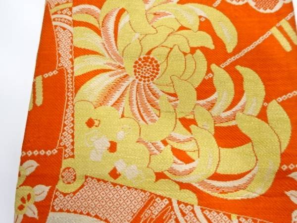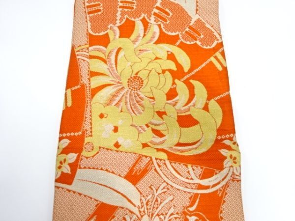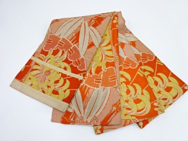 ys7078574; 桧扇に乱菊・笹模様織り出し子供帯(材料)【アンティーク】【着】