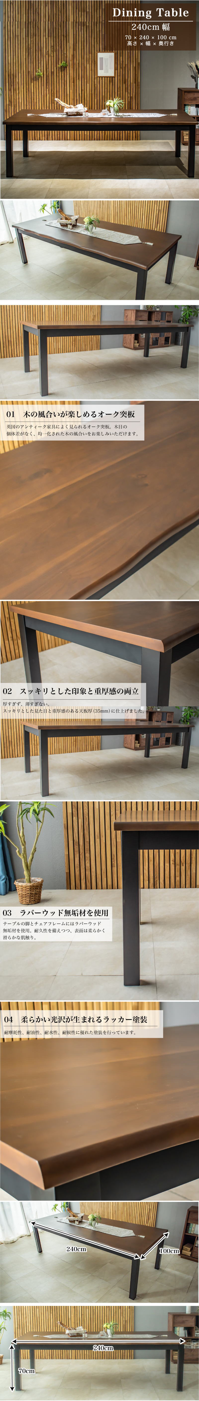 240cm幅ダイニングテーブル オーク材