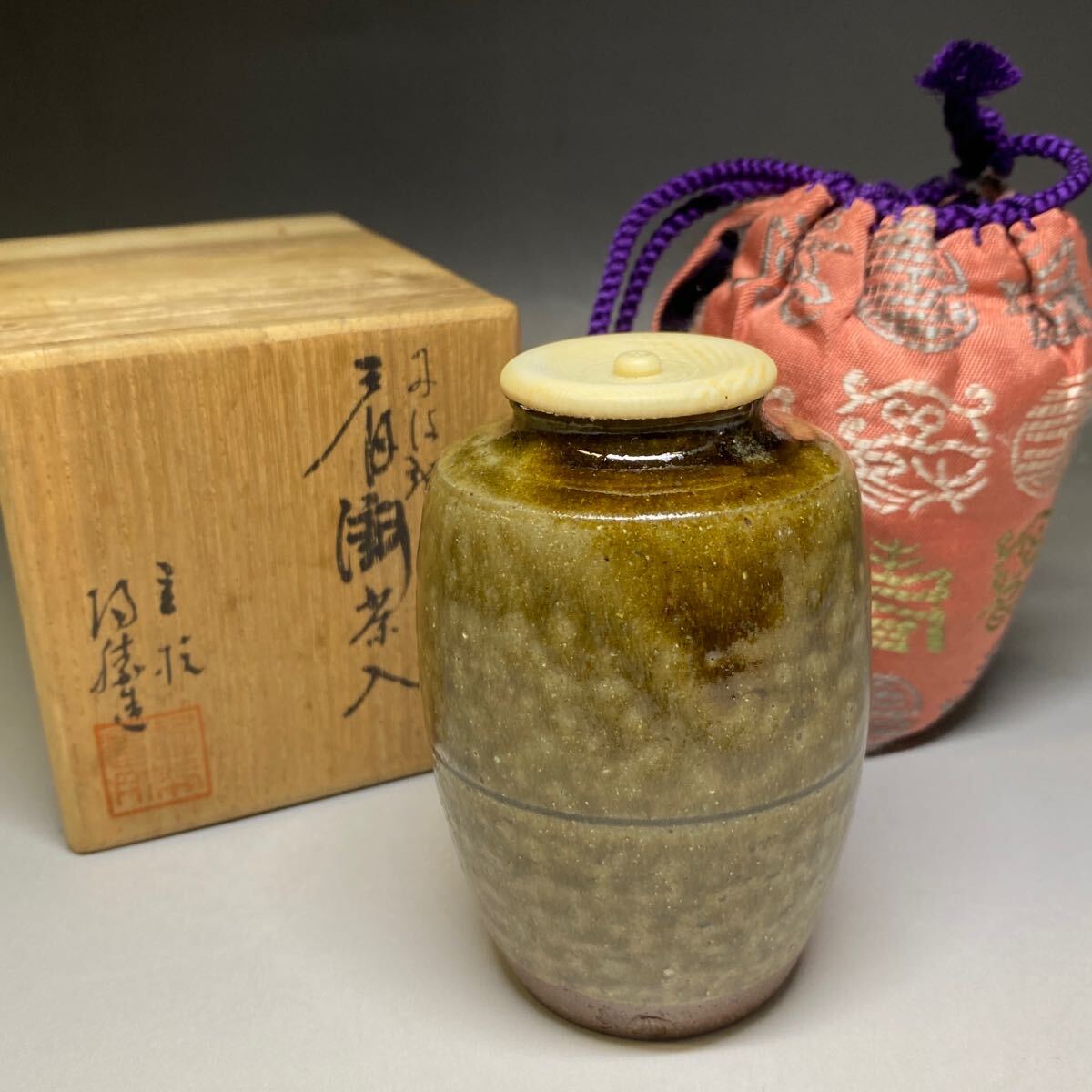 ◆ 【茶道具】 丹波焼 市野陶勝 造肩衝茶入 共箱 木箱 布袋 陶勝 煎茶道具