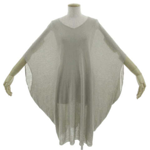 コーザノストラ COSA-NOSTRA ワンピース ニット Vネック 五分袖 ミディ丈 ハイゲージ 透け感 日本製 グレージュ系 40 レディース