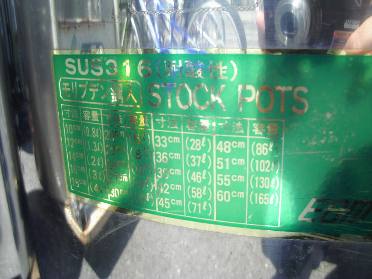 業務用 寸胴鍋 SUS316 モリブデン鋼入 STOCK POTS EBM