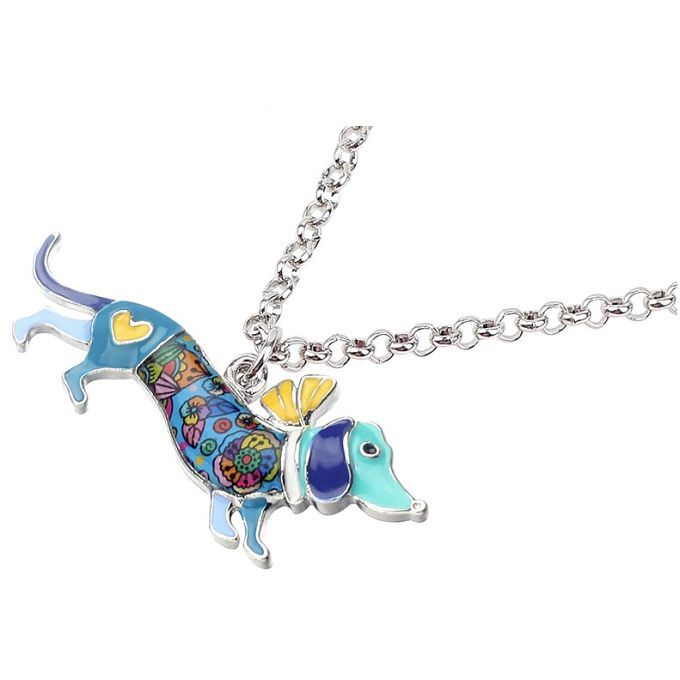 【送料無料】ダックスフンド C マフラー エナメルネックレス 青 ダックス 【新品】