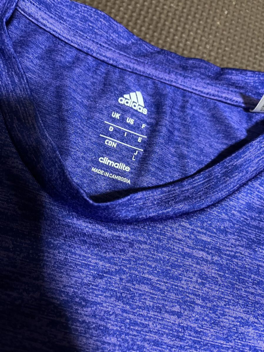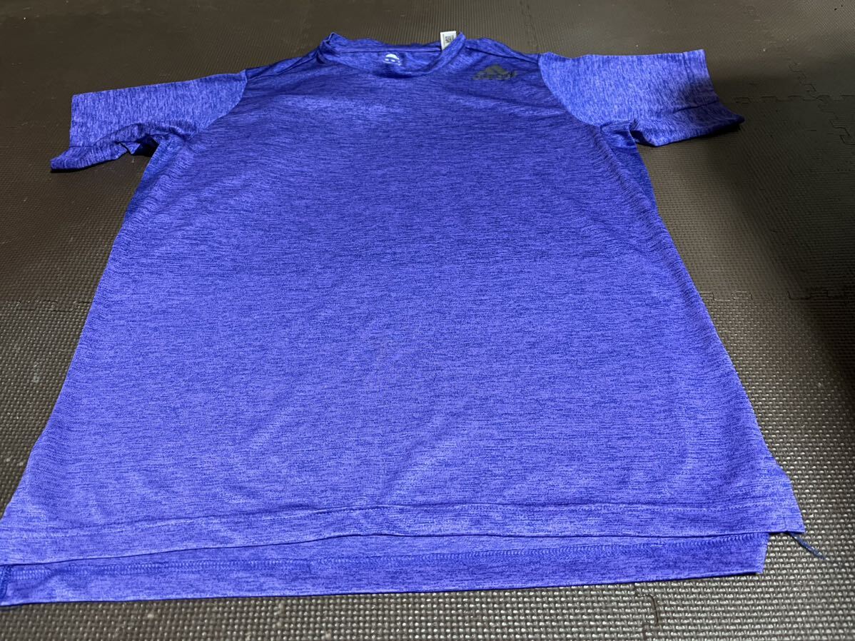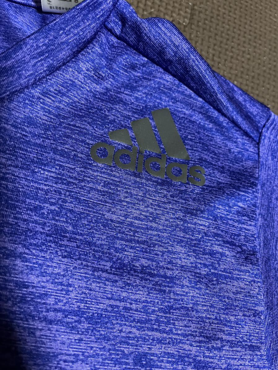 新品adidasパープル柄、ロゴ黒、半袖ストレッチトップス
