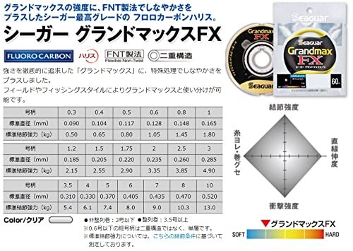 「シーガー(Seaguar) ハリス シーガー グランドマックスFX 60m 0.6号 クリア」▼4562398220591▼(商品説明)60m・クリア 0.6号 ―・・Size:0.6号・素材: フロロカーボン・号数:0.6号 / 全長:60m / カラー:クリア・スプールバンド説明 強さを徹底追及した「グランドマックス」に、特殊処理でしなやかさをプラスしたシーガー最高グレードのフロロカーボンハリス! それがグランドマックスFXです! ラインカラー:クリアー